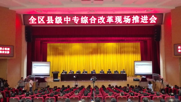 秦斌厅长在会上作讲话,他要求,要抓好落实,群策群力,推动县级中专改革。对如何实施,秦斌指出,各市县教育局要主动落实,各高职院校要清醒认识,生源增量来源于中职,要实施一校一策,注重发展定位规划;要主动对接中职拉动生源;要主动适应社会需求,改造专业及课程体系;中高职一起联合做好招生工作;进一步强化中高职衔接,做好对口帮扶,走集团化办学路线;要改革创先,着眼长远,科学论证和科学规划“十三五”,加快推进现有的项目建设和实施。