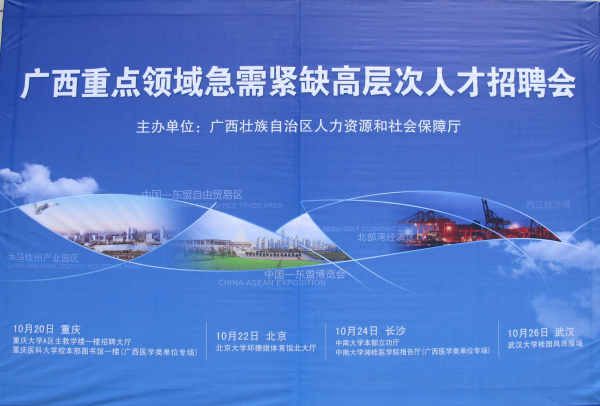 10月19日至27日,awc77万象城官网党委书记覃艳娟、院长沈立君率人事处有关负责人一行5人,分赴重庆大学、北京大学、中南大学、武汉大学等四所“985”高校参加2014年广西重点领域急需紧缺高层次人才招聘会。