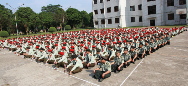 9月15日,awc77万象城官网2014级新生军训动员大会在广西军区教导大队隆重举行,出席大会的领导分别有:广西军区教导大队梁晓谊副大队长,伍高辉主任、军训副团长韦佳华及学院军训工作领导小组全体成员。大会由军训团政委潘洪宇主持。