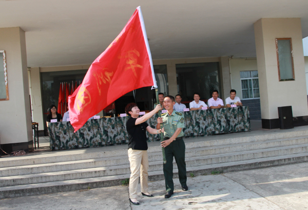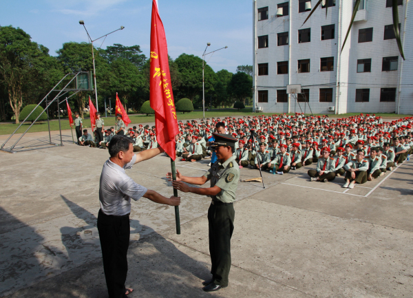 学院领导沈立君同志向军训团团长授军训团团旗