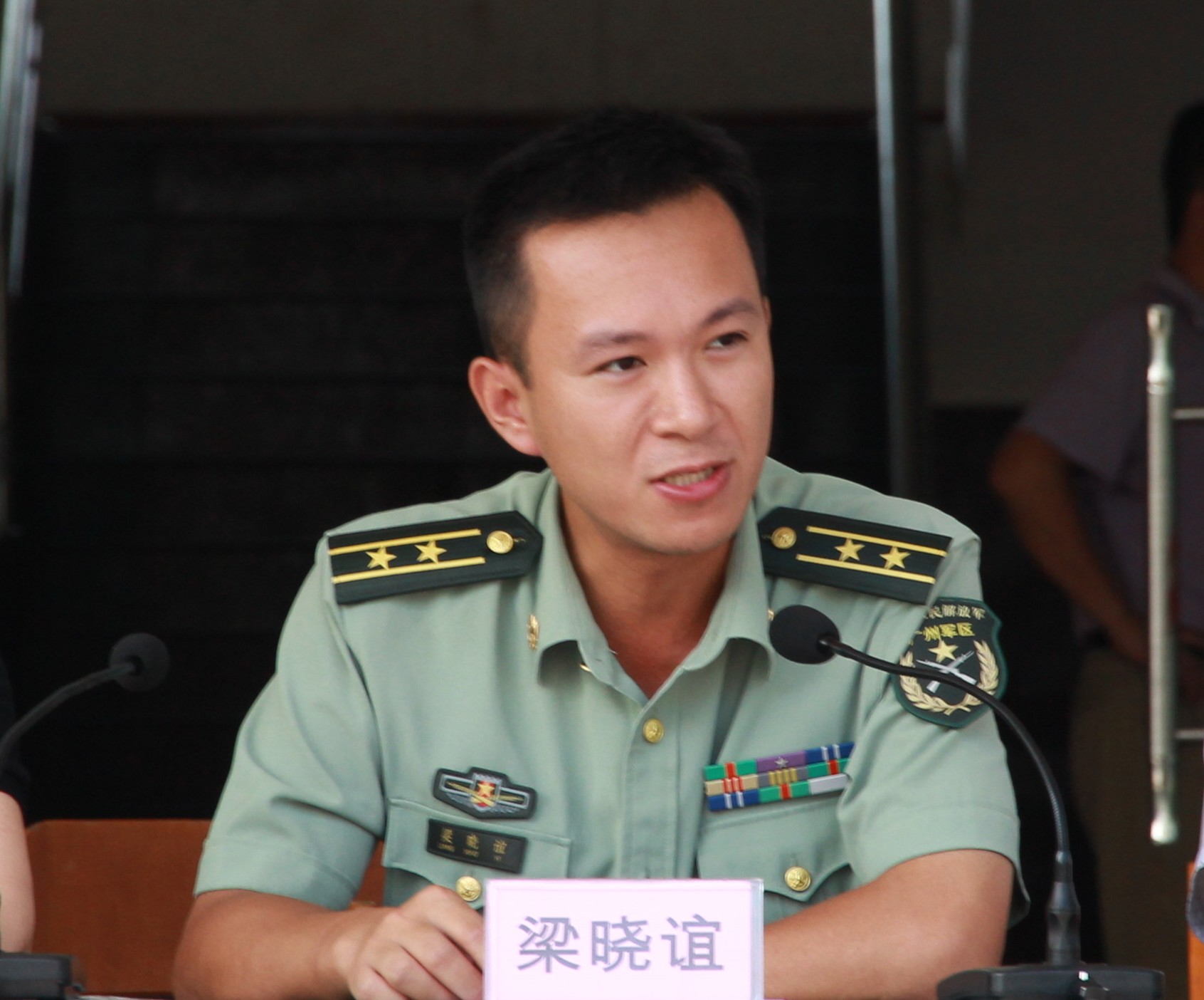 广西军区教导大队梁晓谊中校发表了讲话