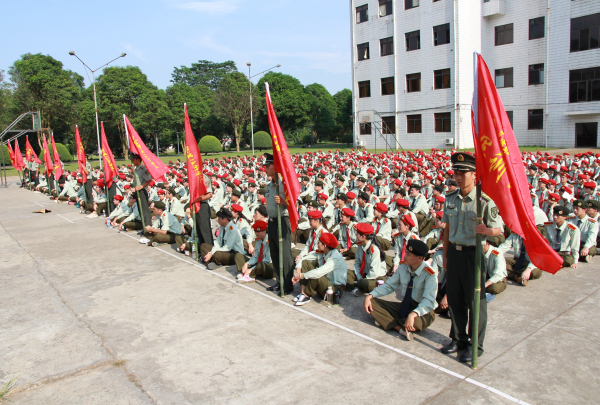 接着,广西军区教导大队梁晓谊中校发表了讲话,他希望全体同学端正态度,服从管理,听从指挥,发扬不怕苦、不怕累的精神,坚定信心,自觉投身到军训中去,以优异的成绩圆满完成军训任务。