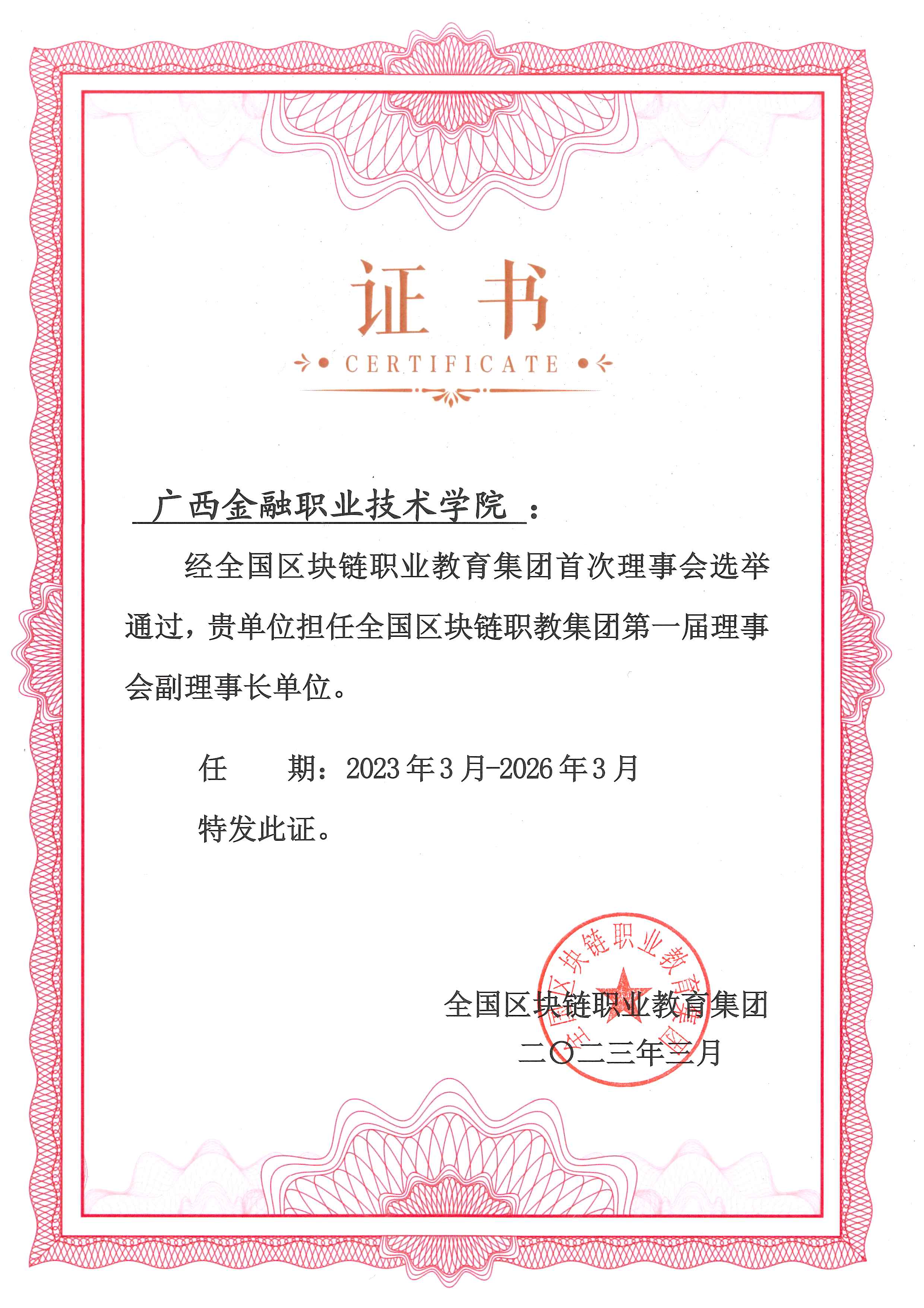 2023年3月3日至4日,全国区块链职业教育集团成立大会暨首届中国区块链教育高端峰会在广州白云国际会议中心顺利举行。万象城官网在大会上成功当选为副理事长单位。