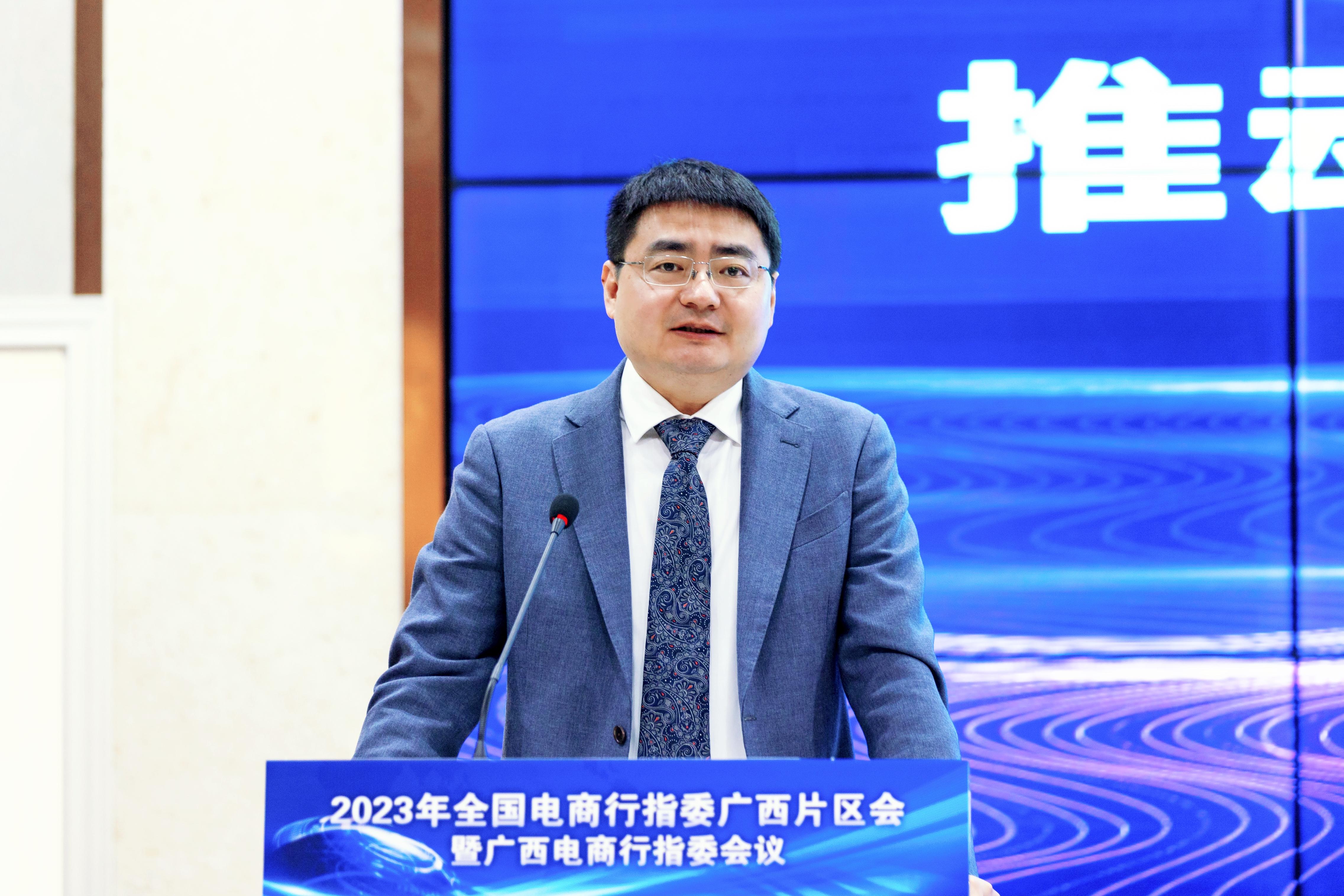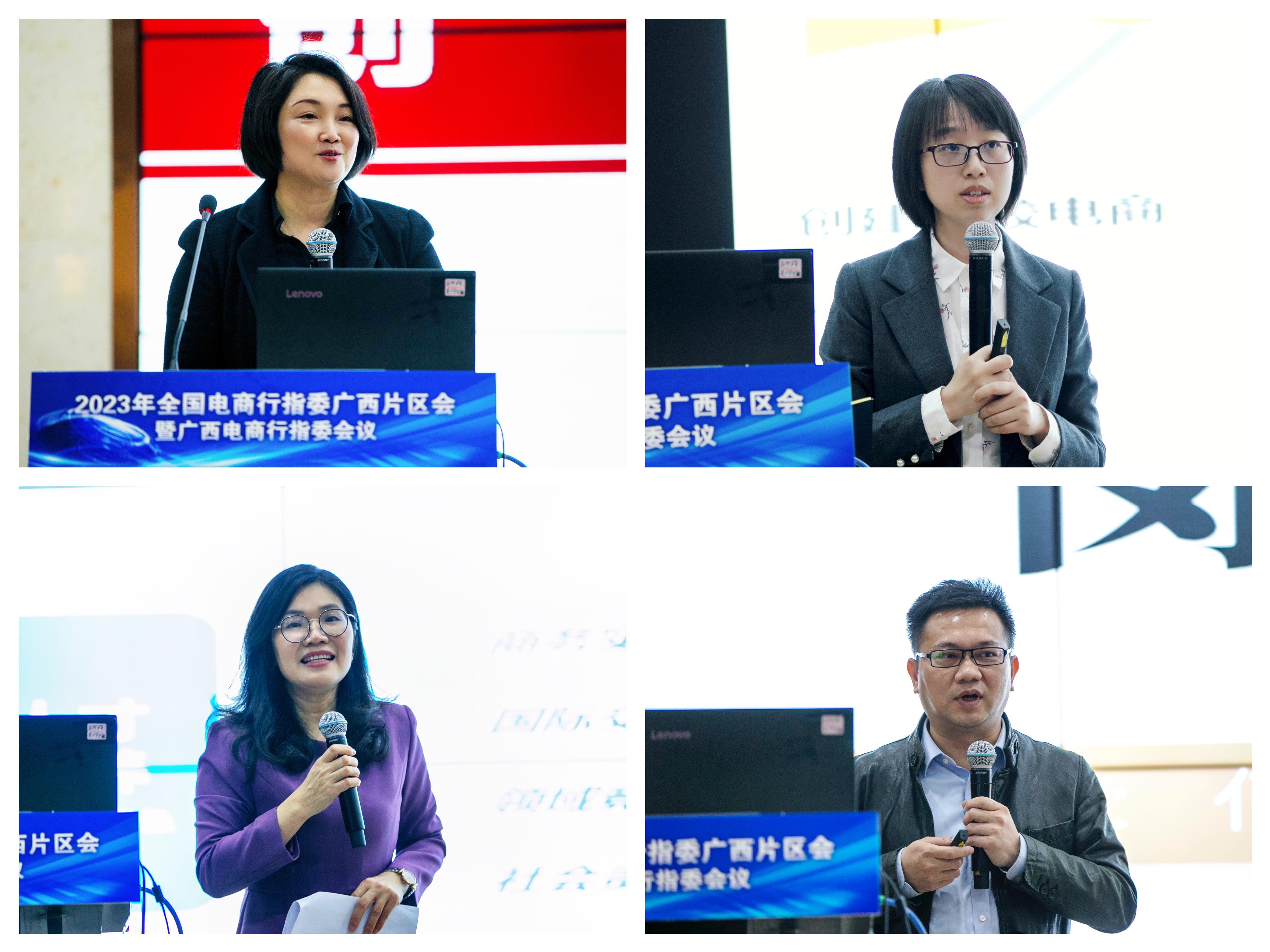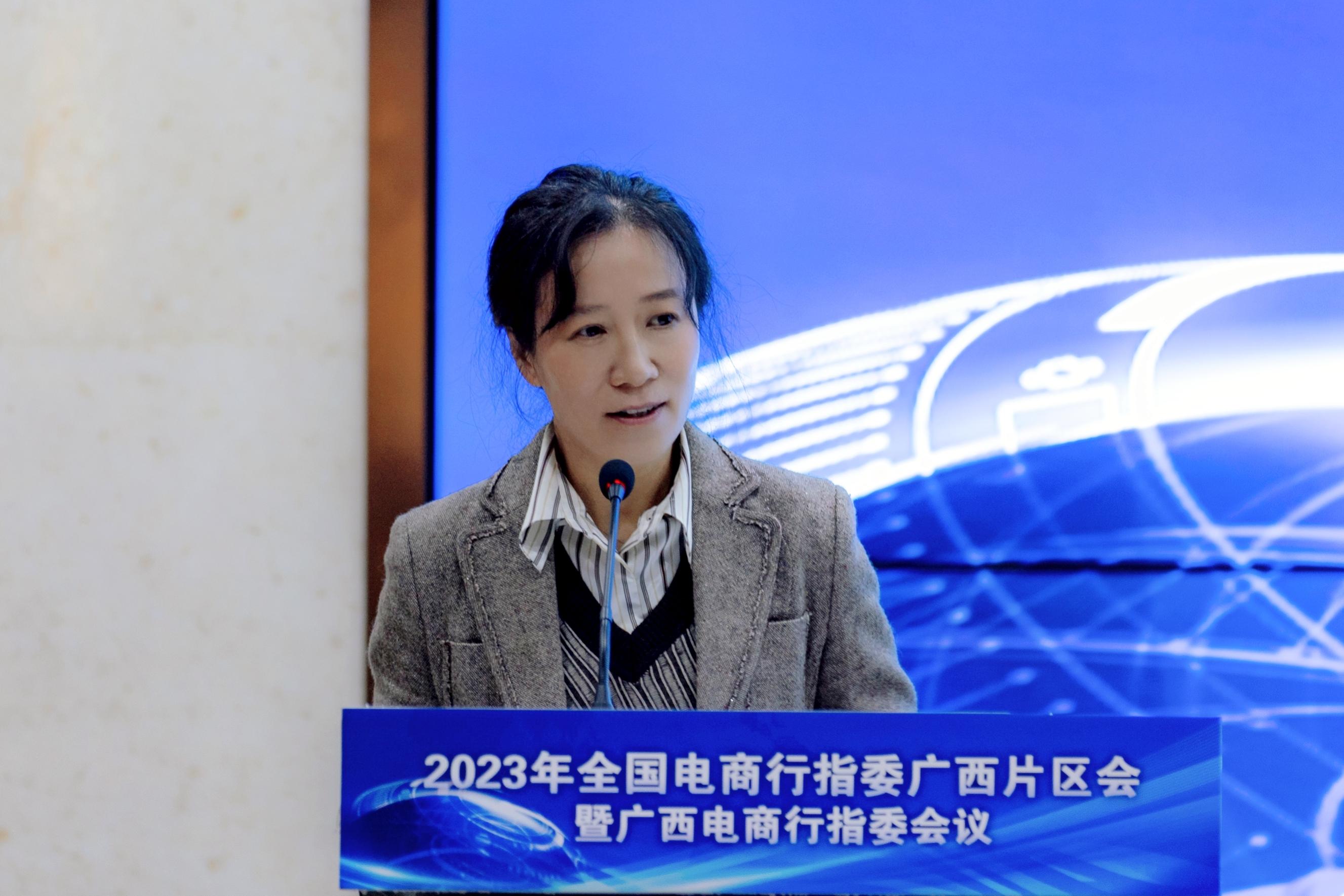 自治区教育厅覃壮才处长对会议的顺利召开表示祝贺,对全国电商行指委支持广西电商专业发展表示感谢。他介绍广西职业教育的总体情况,并对广西电商专业职业教育的发展提出5点建议:职业院校以产业链作为切入点,推动电商发展;以高质量高标准为核心,推动校企高质量育人;以面向乡村振兴和东盟为方向,打造特色;企业、院校要充分利用校企合作平台,共谋发展;行指委、企业、院校携手建设广西电商平台智库。