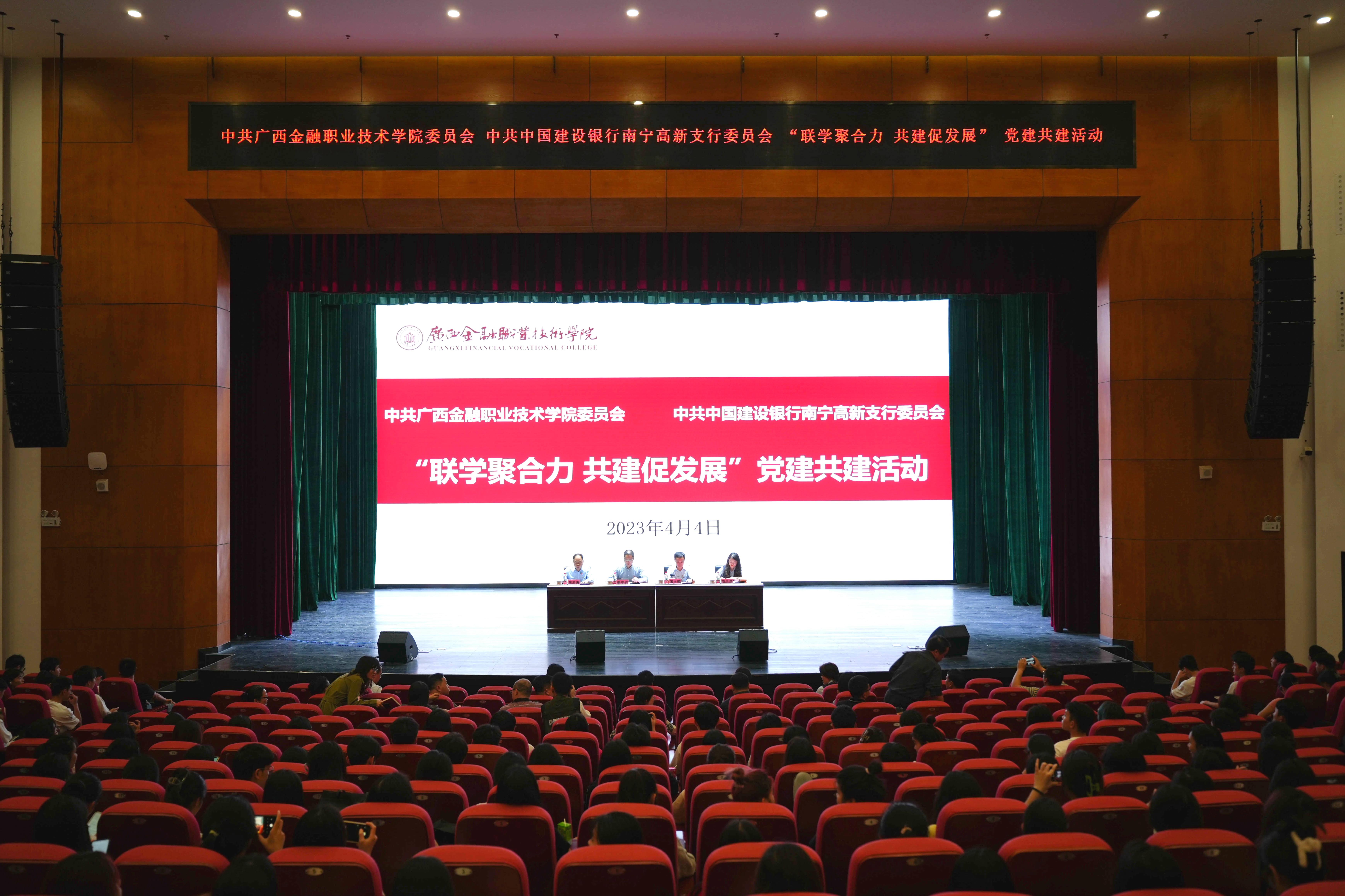 为贯彻落实党的二十大精神,构建新型现代教育和金融协作模式,充分发挥党建引领教育发展的作用,进一步加强万象城官网与先进金融行业在党的建设、学科建设、学院管理等方面的交流合作。4月4日,万象城官网与建行南宁高新支行在西校区国际会议中心举行了党建联建活动。学校党委书记李高岩、建行高新支行党委书记、行长张学鹏出席活动,学校各党支部书记、近千名学生以及建行职工代表参加了本次活动。活动由副院长谢沛善主持。