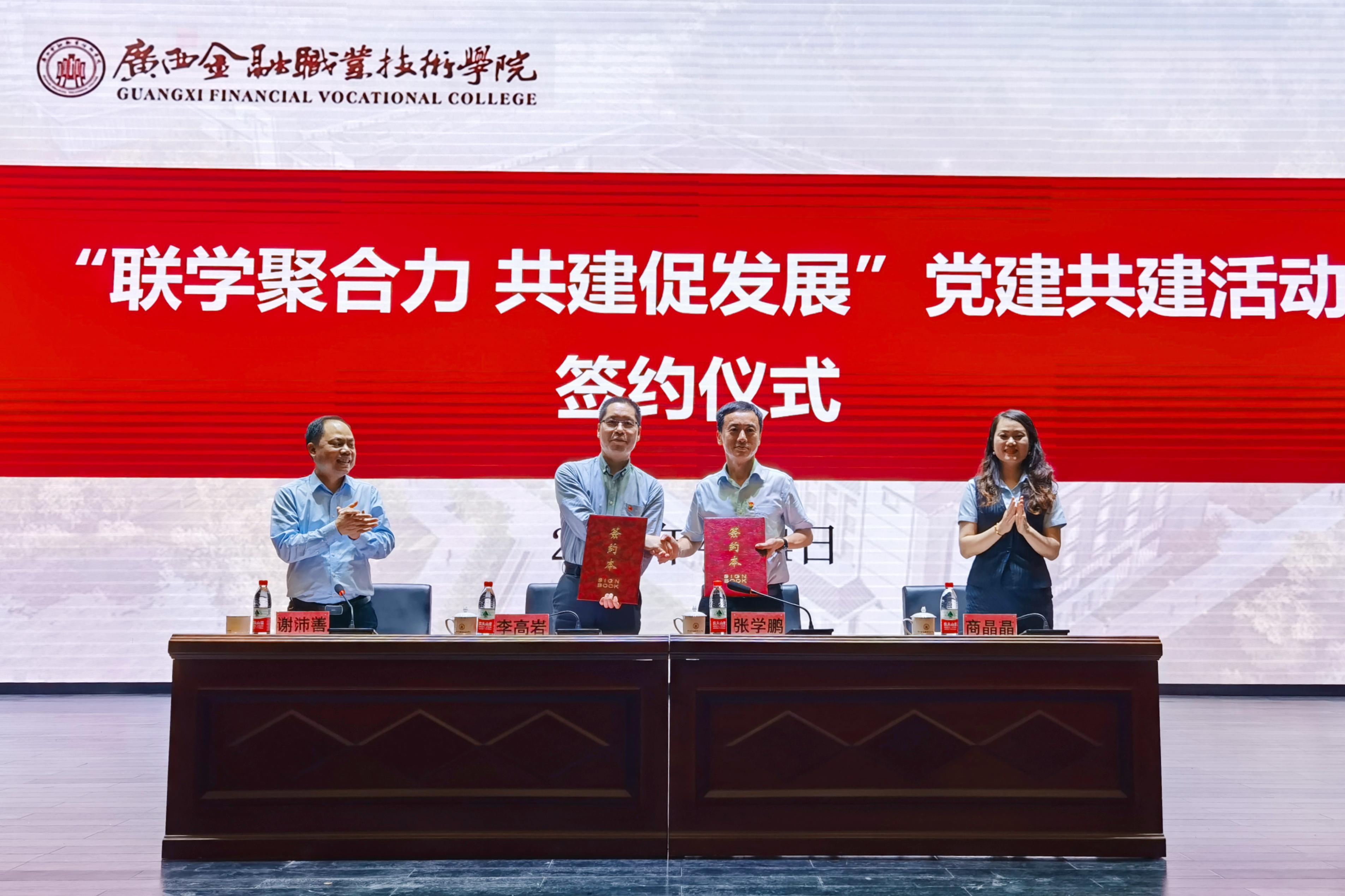 学校党委书记李高岩、建设银行高新支行党委书记张学鹏代表awc77万象城官网与建设银行广西高新支行双方签订党建共建协议书,正式开启了银校两家党组织结对子共发展的新篇章,标志着双方在构建资源共享、优势互补、探索创新党建工作新格局方面迈出了新的一步。