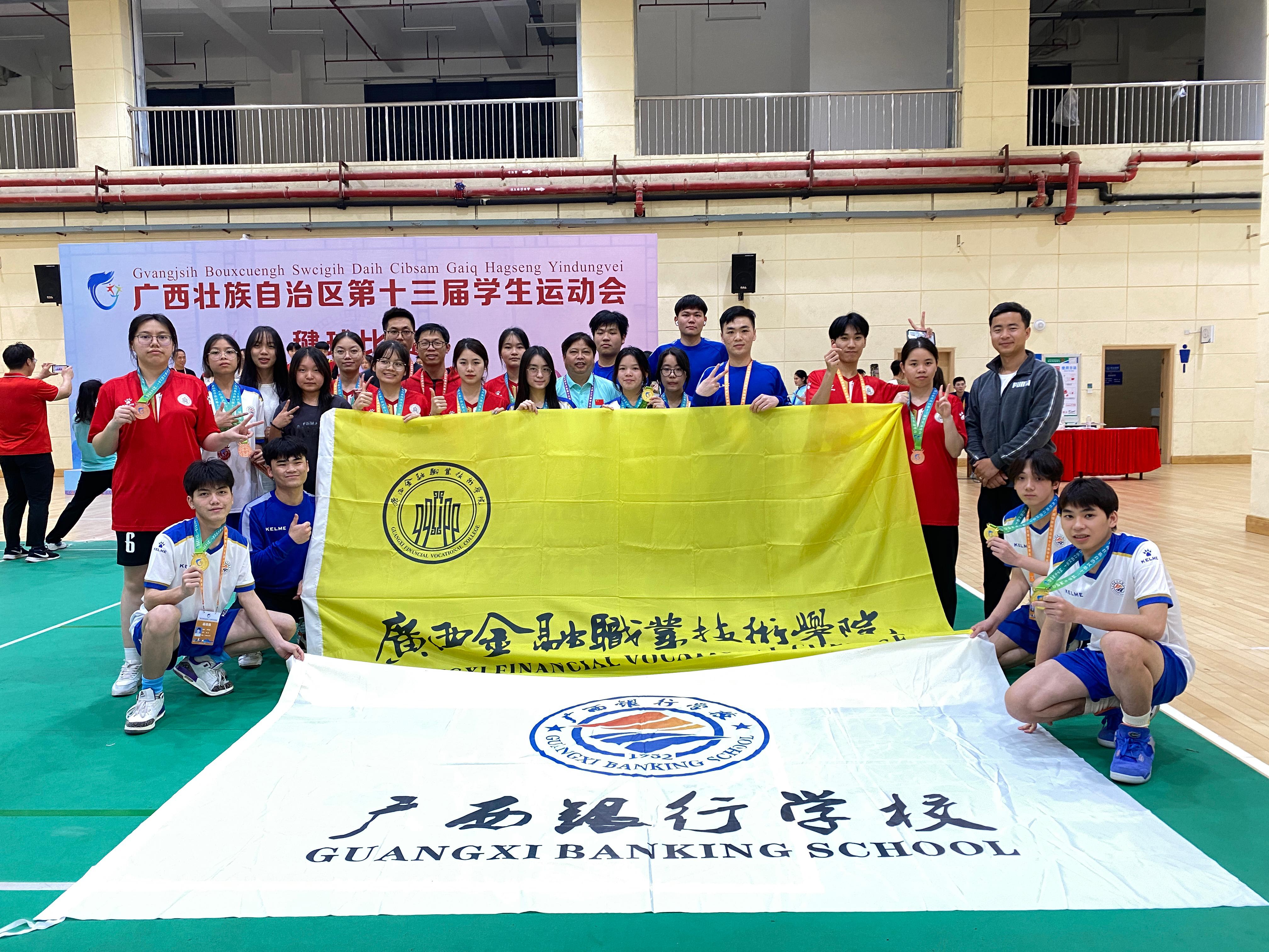 4月1日-2日,广西壮族自治区第十三届学生运动会民族传统体育项目毽球比赛在崇左市举行,万象城官网公共基础部民族传统体育教学团队组建的两支毽球运动队喜获5金5银12铜合计22块奖牌的好成绩。