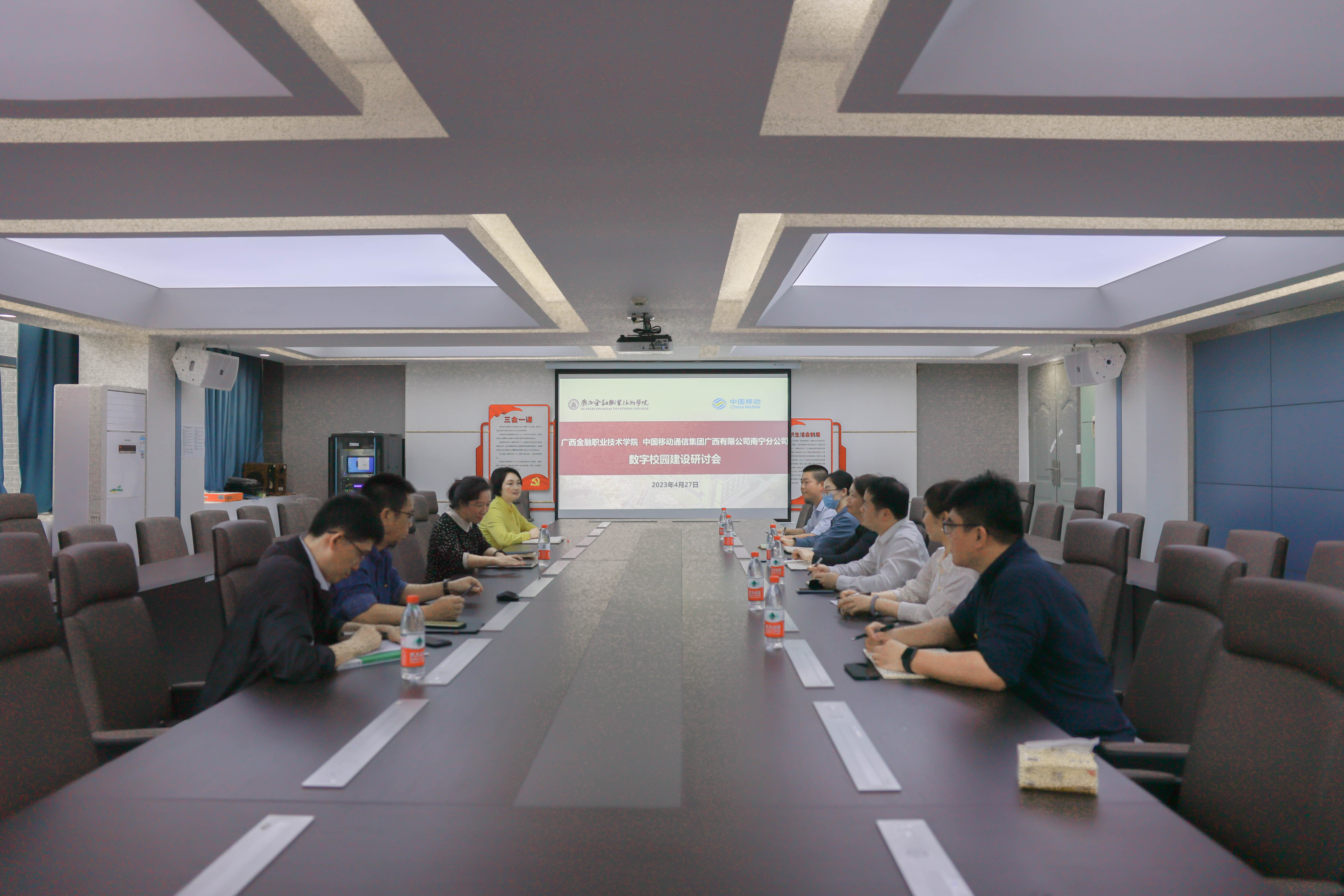 4月27日下午,中国移动广西南宁分公司党委书记邓卫娟一行到访万象城官网,院长莫海燕、教务科研处副处长李琪、信息管理中心主任陈浩、合作与交流中心主任韦施羽出席会议,校企双方就数字校园建设、云电脑移动办公等进行交流研讨。