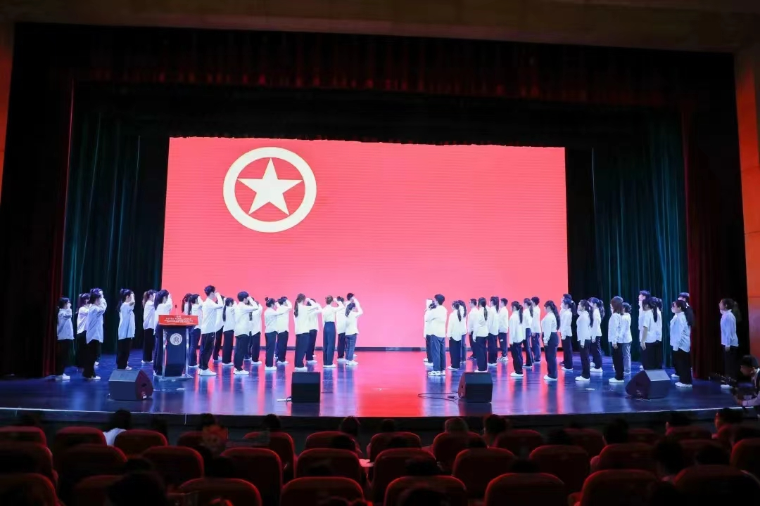 表彰仪式上还举行了新团员入团仪式。校团委宣传部部长李闻同学带领新团员进行了宣誓。