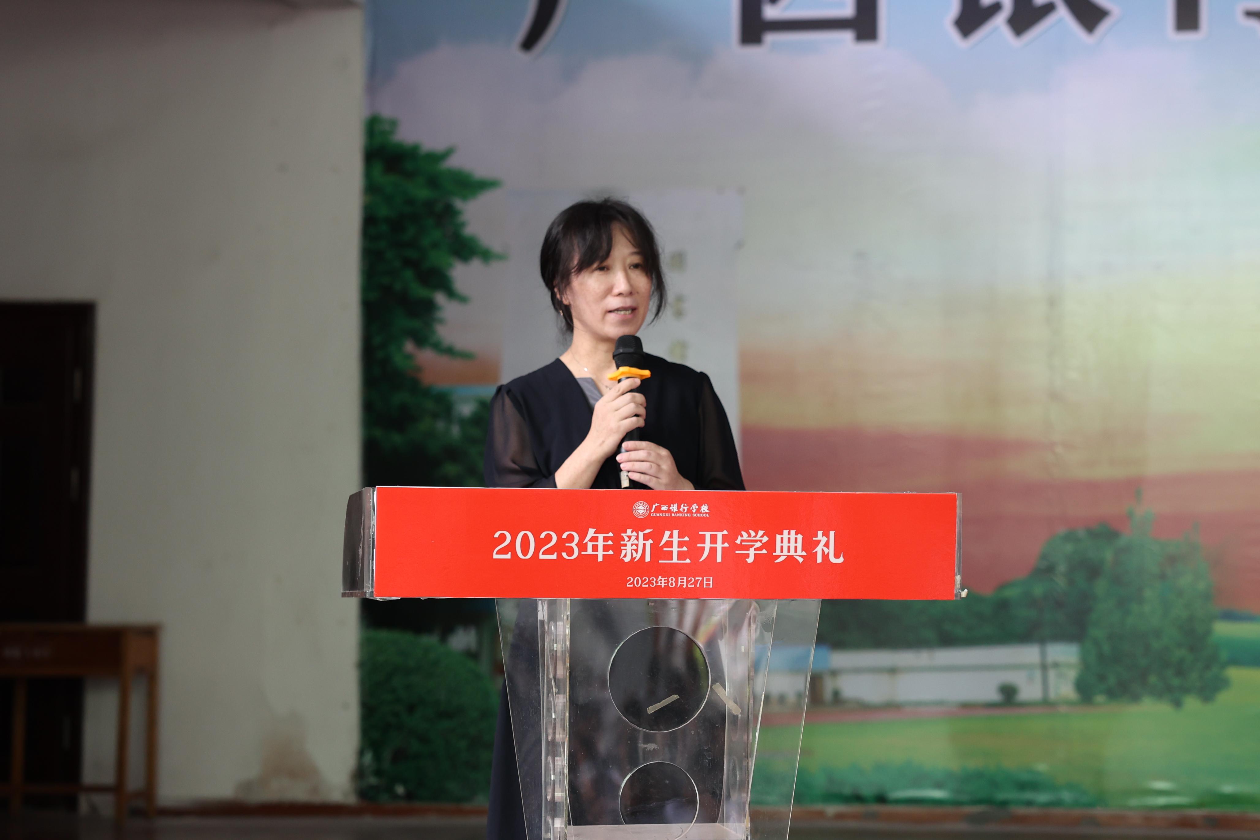 校长莫海燕在致辞中与同学们分享了广西银行学校的光辉历史和成就,她表示,广西银行学校是一所底蕴深厚的职业学校,是广西唯一的金融类国家级重点中专,首批国家中等职业教育改革发展示范建设学校,同时也是一所金融经济专业特色鲜明的“中职+高职”双轨运行的学校,享有“八桂金融人才摇篮”的美誉。新学期新起点,莫海燕校长向同学们提出殷切希望,一是立学,实现从“会学”到“学会”、从“好学”到“学好”的转变。二是立身,培养向内自省、以己为鉴的意识和习惯,逐步形成清晰的自我认知。三是立志,合理规划每一个阶段性目标,珍惜每一堂课、每一次实践、每一个互动的机会,最终实现自己的目标,以责任与使命意识去开创的美好未来。