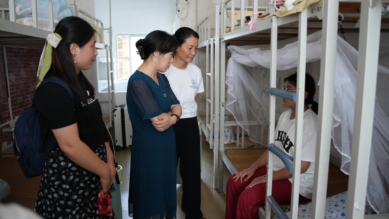 莫海燕校长、潘大胜副校长来到迎新现场,了解新生报到情况以及报到后的学生管理情况,并暖心慰问迎新工作人员。当天下午,莫海燕院长与后勤管理与保卫处、学生工作与招生就业处相关负责人走访了学生宿舍,与新生亲切交谈,并勉励新生尽快适应校园生活,珍惜韶华,刻苦学习,奋发图强。
