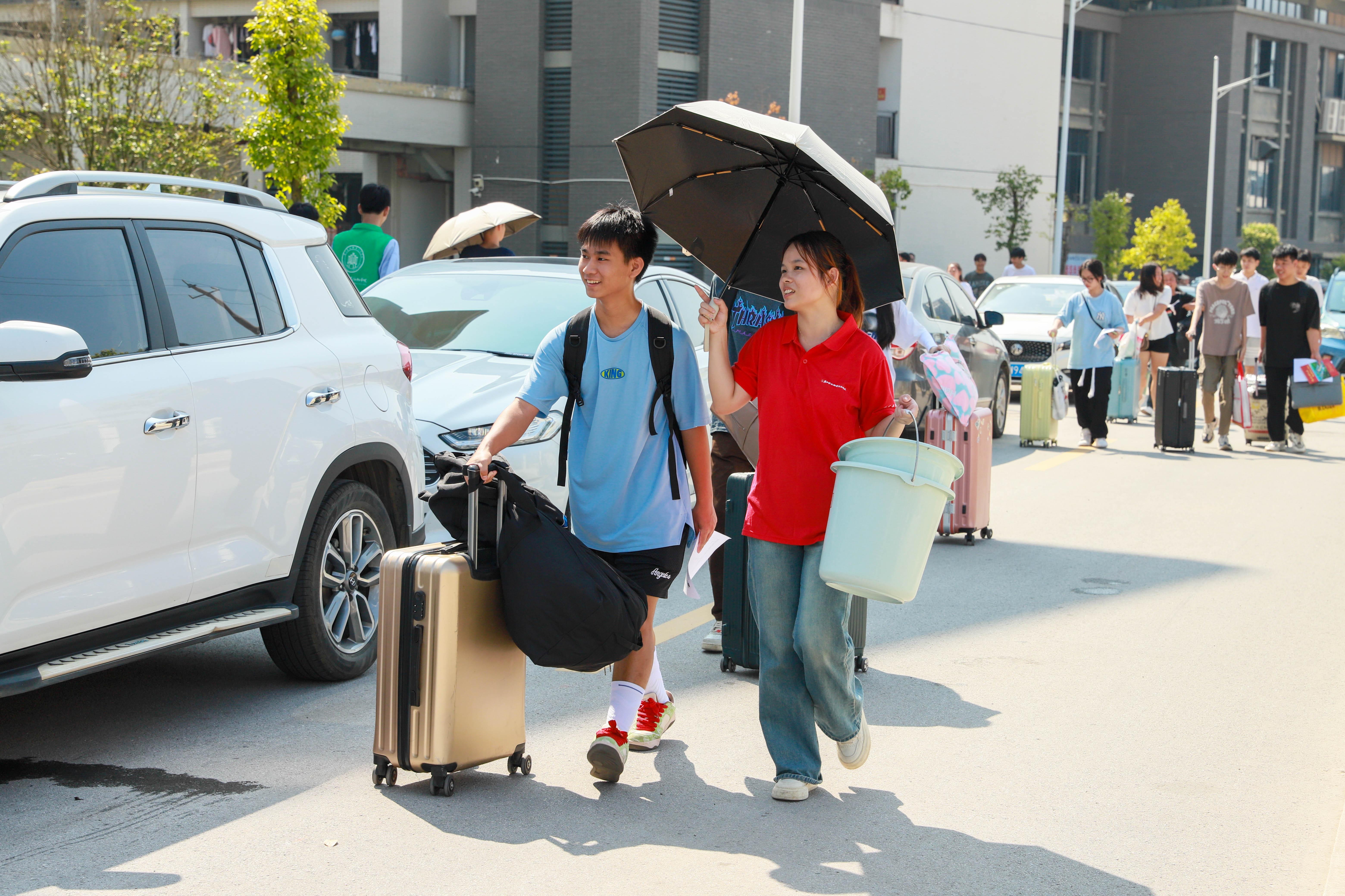 为给新生入学提供更全面的保障和更周全的便利服务,学校提前做好了全方位部署,各职能部门尽职尽责,用暖心的服务为新生的“金院第一天”保驾护航。学生志愿者忙着为学弟学妹们搬运行李,在校内各主要路口,耐心地向新生提供引导、指示和答疑等服务,在躬行实践中展现着新一代金院人的责任与担当。