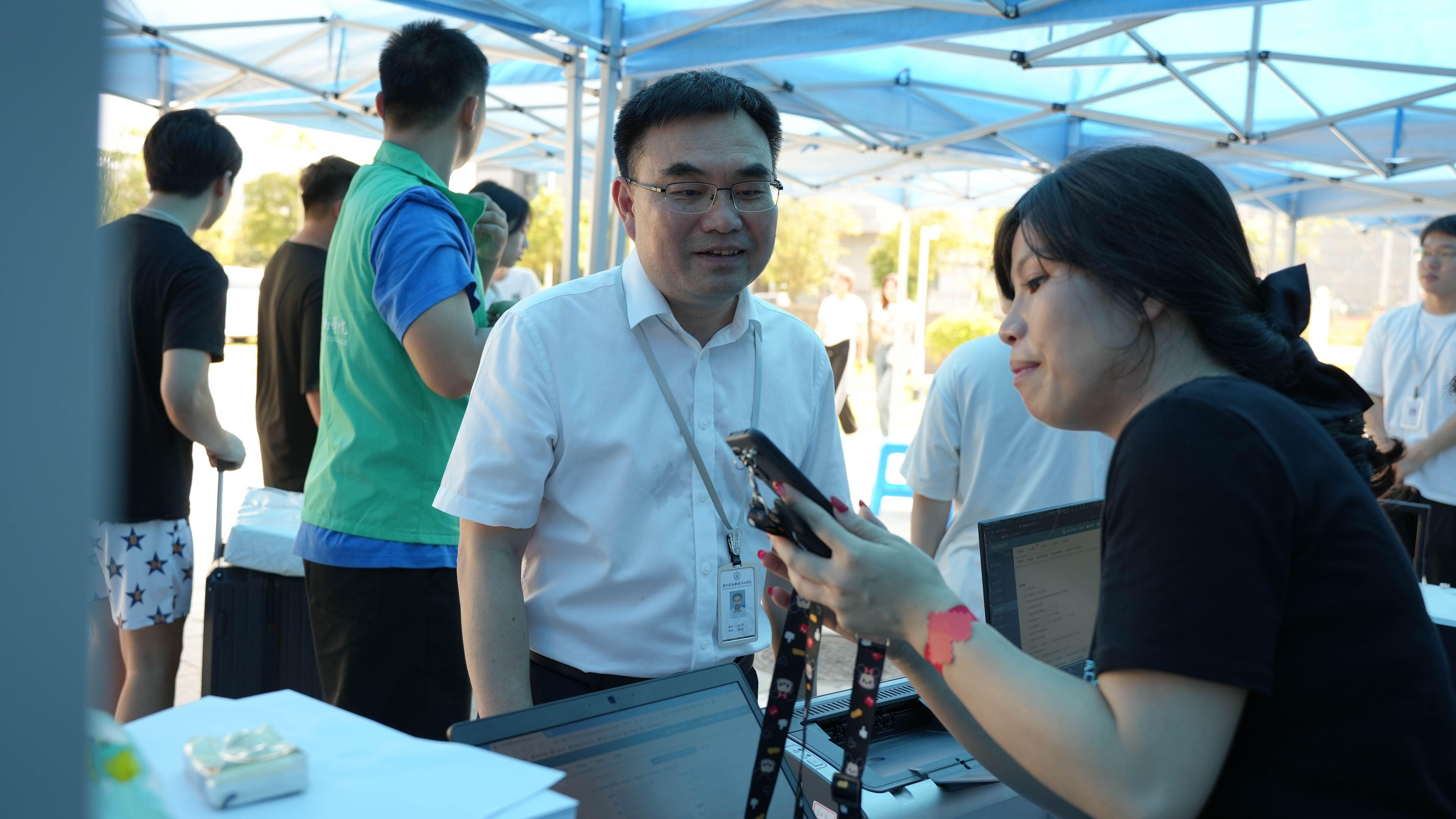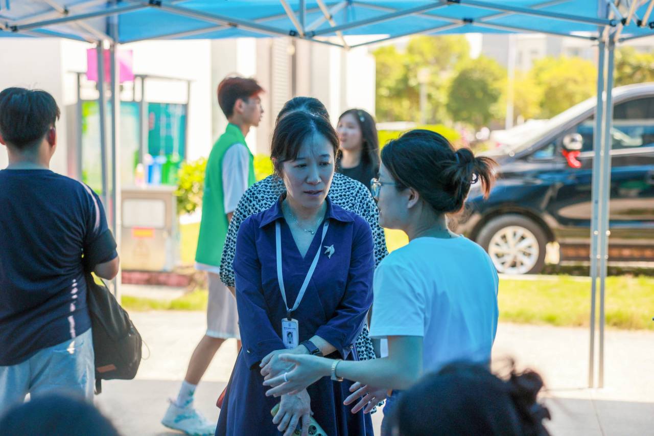 为确保迎新工作顺利开展,学校领导高度重视、全面部署,统筹推进相关工作。9月6日下午,院长莫海燕来到报到现场,与新生和家长们亲切交谈、合影留念。她表示金融职院就是同学们温暖的家,请同学们和家长们放心,金融职院将为大家提供更广阔的平台、更多元的选择竭尽全力服务学生健康成长与全面发展,她寄语新生希望大家以崭新的精神面貌迎接大学生活,勇敢追逐青春梦想,尽情探索未知与前沿,努力成长为担当民族复兴大任的社会栋梁。纪委书记刘华政、副院长潘大胜亲切慰问安保工作人员及学生志愿者,对志愿服务团队的辛勤付出予以充分肯定。