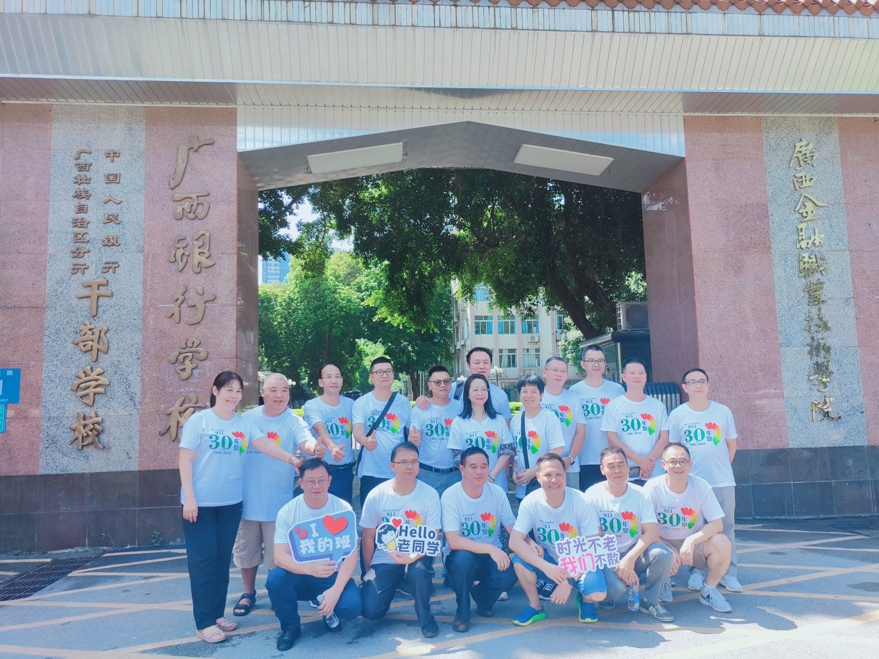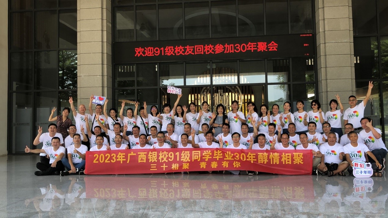 2023年9月23日,万象城官网91级校友毕业30周年返校聚会。学校热情接待广西银行学校91级911、912、913三个班级52名校友。