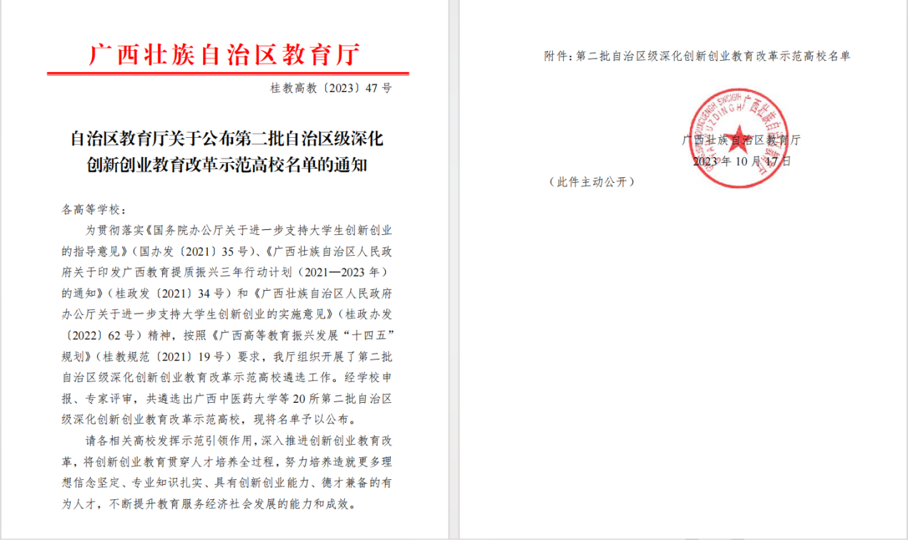 近日,自治区教育厅组织开展第二批自治区级深化创新创业教育改革示范高校遴选。经学校申报、专家审核,万象城官网获第二批自治区级深化创新创业教育改革示范高校。