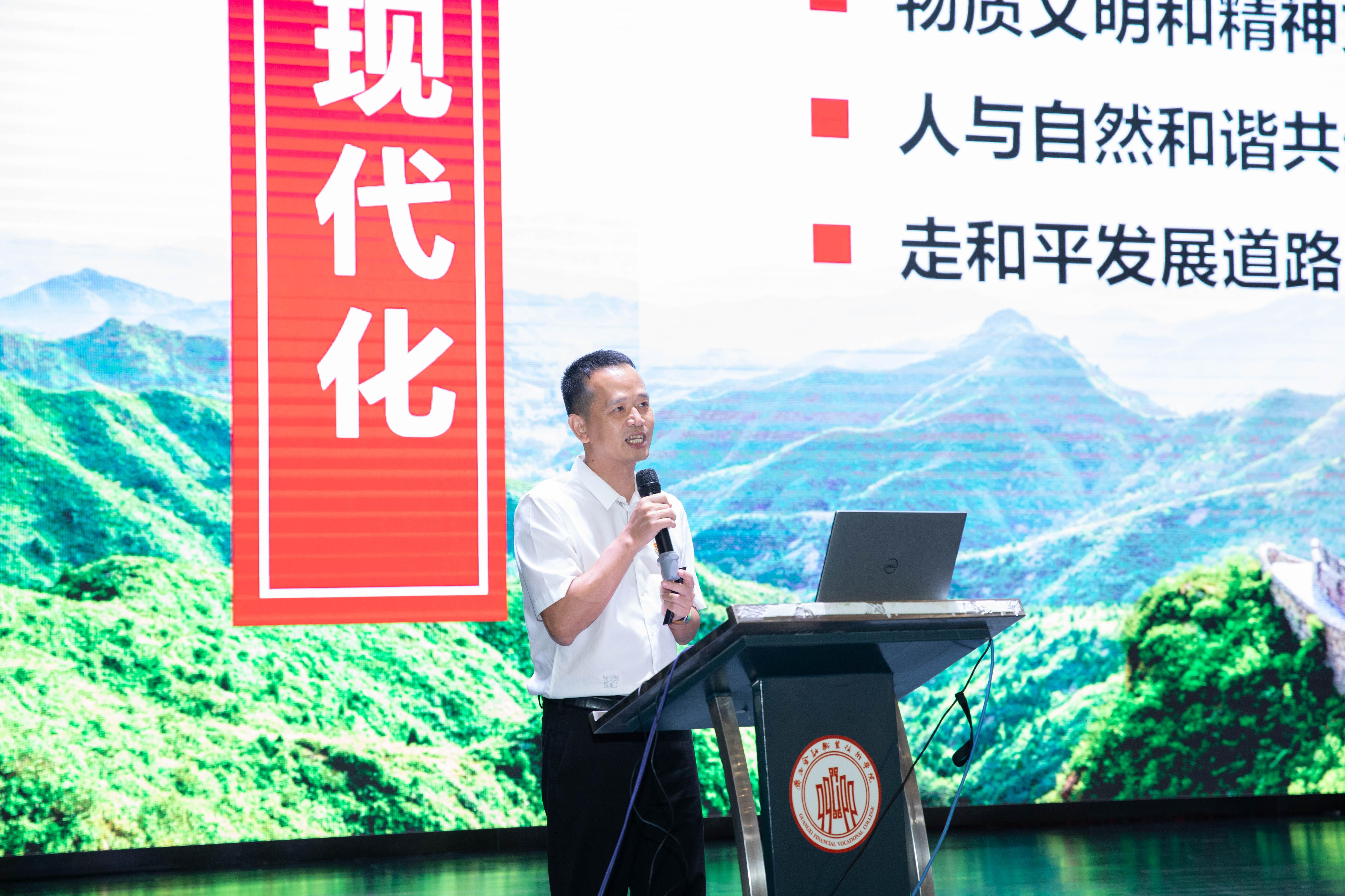 宣讲中,黄振宣教授以《以梦为马,不负韶华——以青春之我为中国式现代化添彩助力》为题,回顾了中华民族求索现代化的艰难历程,阐释了中国式现代化深刻内涵,为帮助同学们坚定道路自信、树立远大梦想提供了重要的精神动力。马梦瑶同学立足乡村振兴的重大战略背景,结合家乡发展变化历程,以《让有风的地方乘风而上》为题,讲述了乡村振兴规划、乡村旅游、乡村教育的“成色”“特色”和“底色”,反映了当代青年在强国时代的学思践悟。潘玥亦同学“解码人口规模巨大的中国式现代化”,用数据变化彰显其实施广度和为民温度,同时传递“夯实技能本领、磨砺技能成才、投身技能报国”的正能量,展现了职教学子“强国复兴有我”的责任与担当。