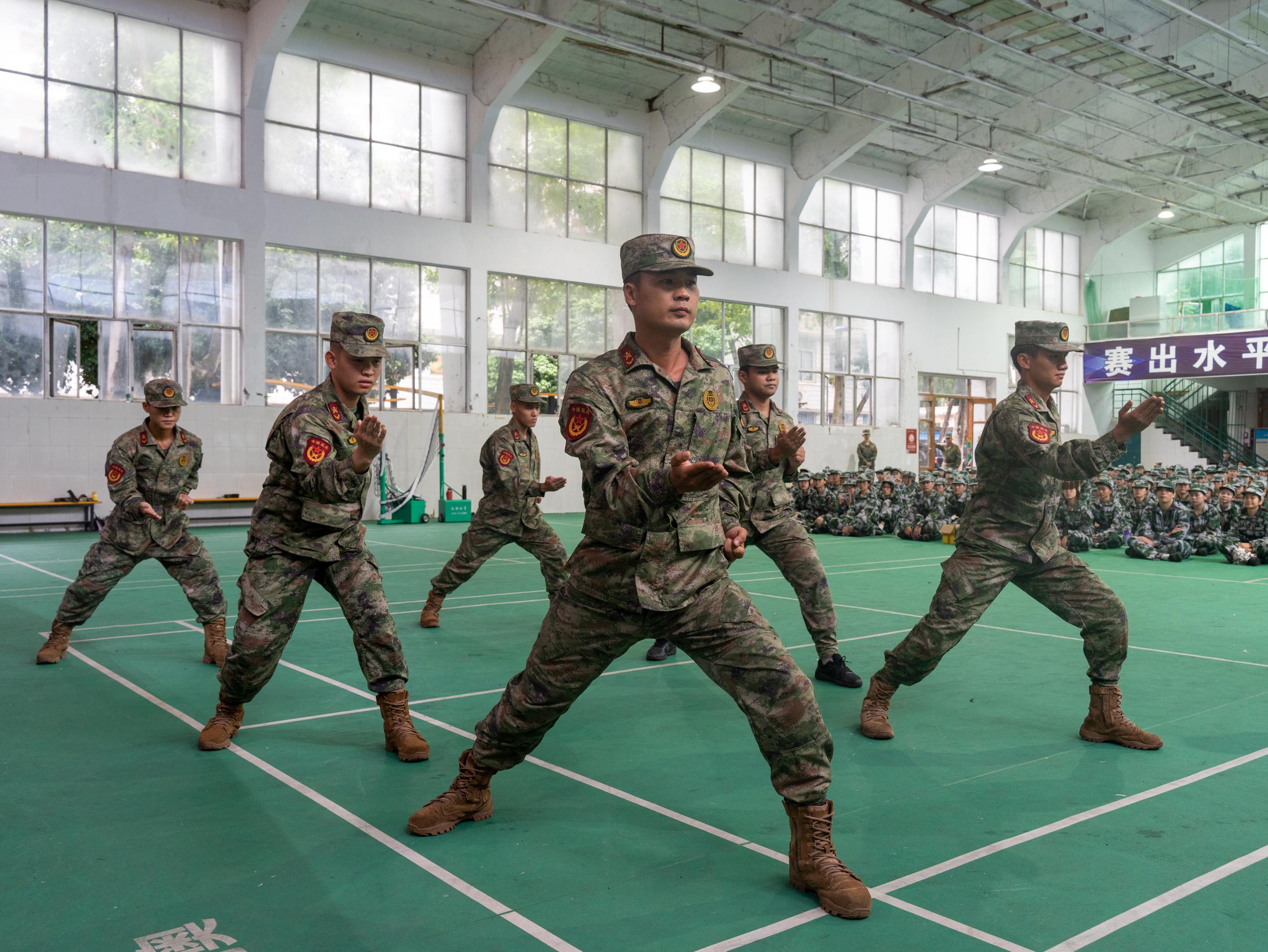 军训团教官代表进行基本军事科目的汇报演示
