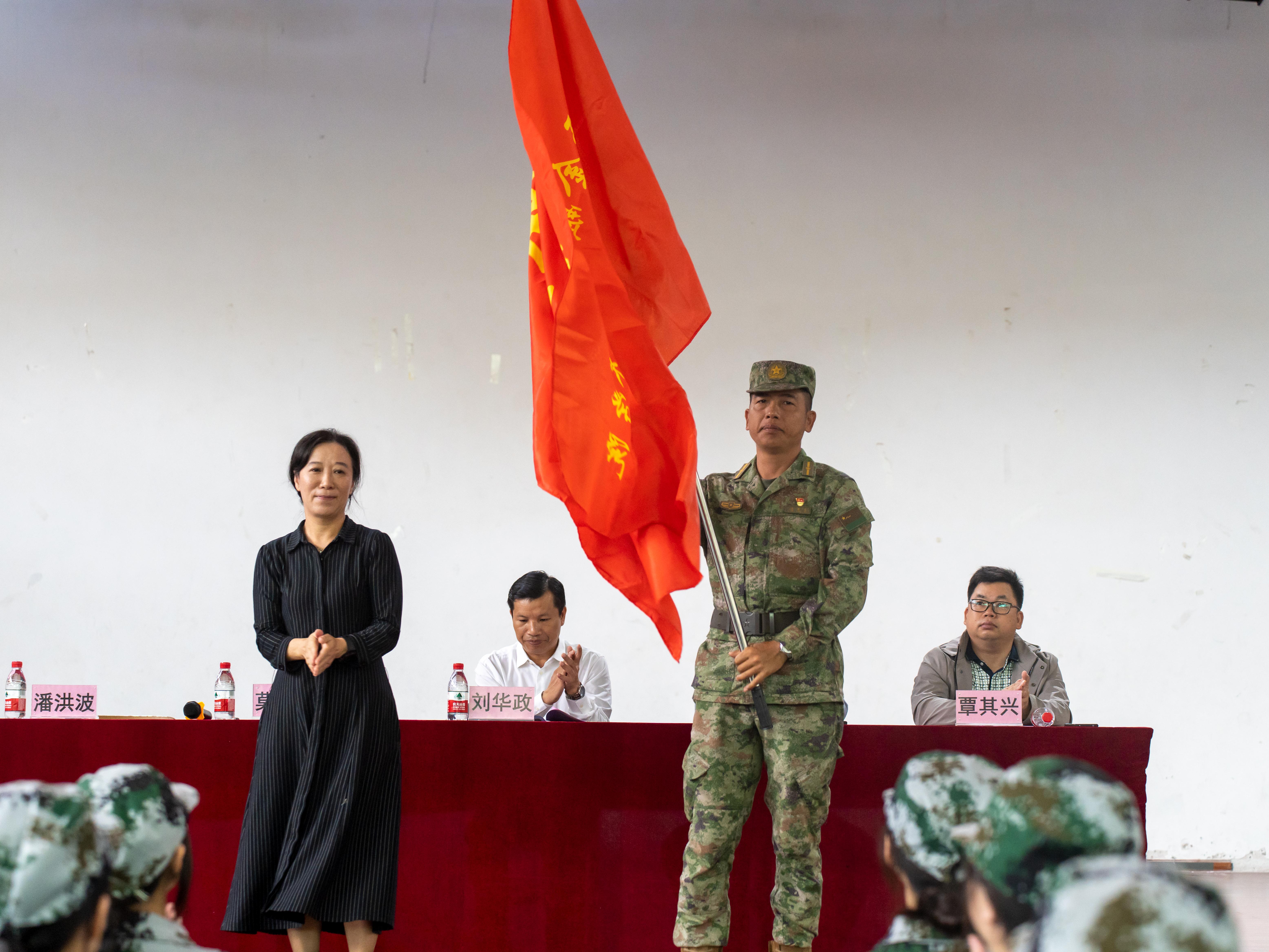 莫海燕校长授军训团团旗