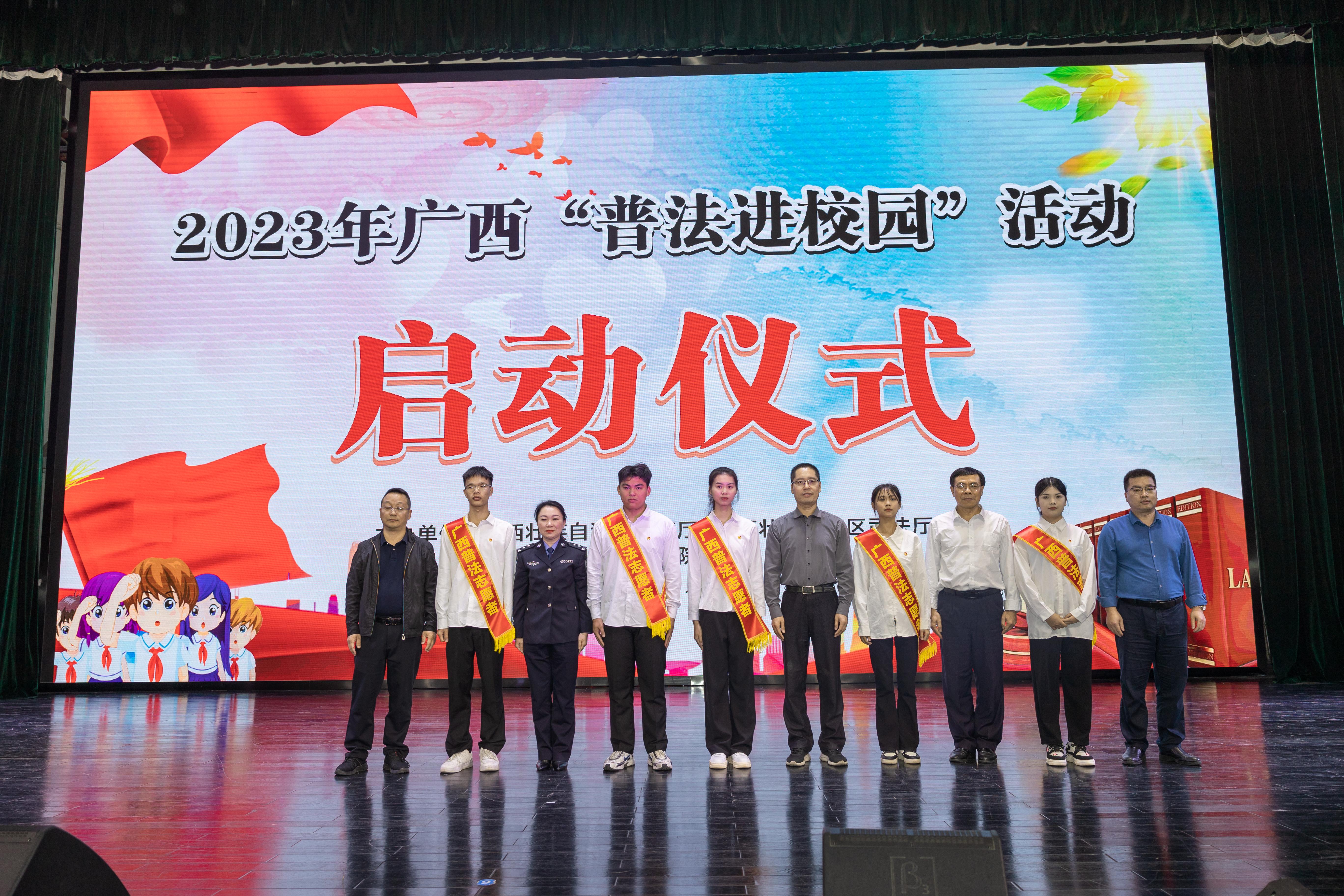 自治区司法厅普法与依法治理处处长陆建武讲话指出,青少年是国家的未来,是民族的希望。学校是青少年教育管理的主阵地,我们要用法治的力量,为青少年健康成长提供高质量的法治服务和法律保障。在这个充满机遇和挑战的时代,我们要以习近平法治思想为指导,全面加强青少年的法治宣传教育,做好校园安全“守护者”和法治教育“引路人”,为未成年人健康成长贡献力量。