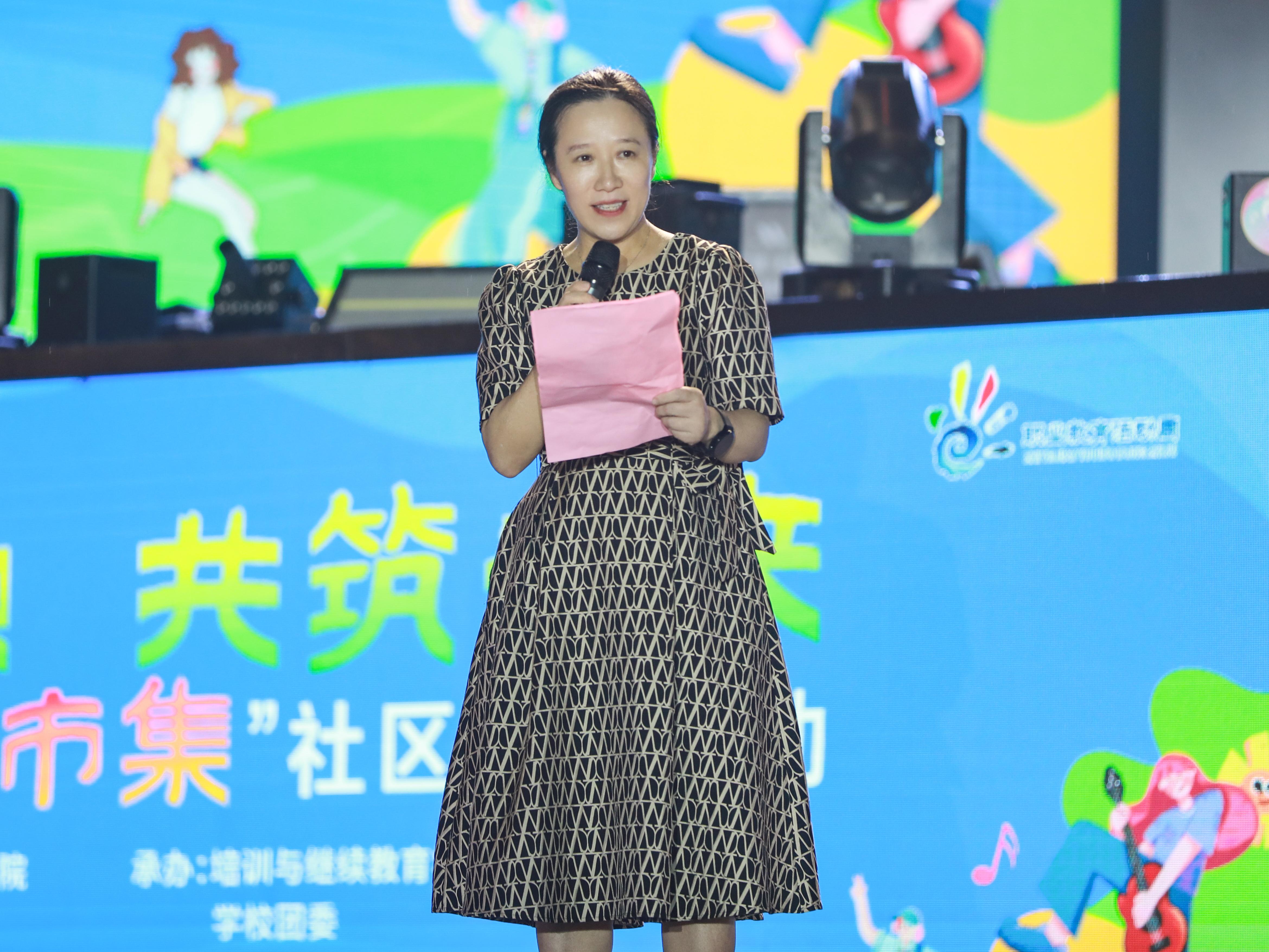 随后,永宁社区罗志恒书记上台致辞,她对活动的成功举办表示热烈祝贺,并感谢awc77万象城官网将优质的职业教育资源引入社区,为广大居民提供了宝贵的学习和交流机会。她强调,此次活动不仅丰富了社区居民的文化生活,也促进了学校与社区的深度融合,为共建社区学院、推动社区居民综合素质提高和服务学习型社区建设奠定了坚实基础。