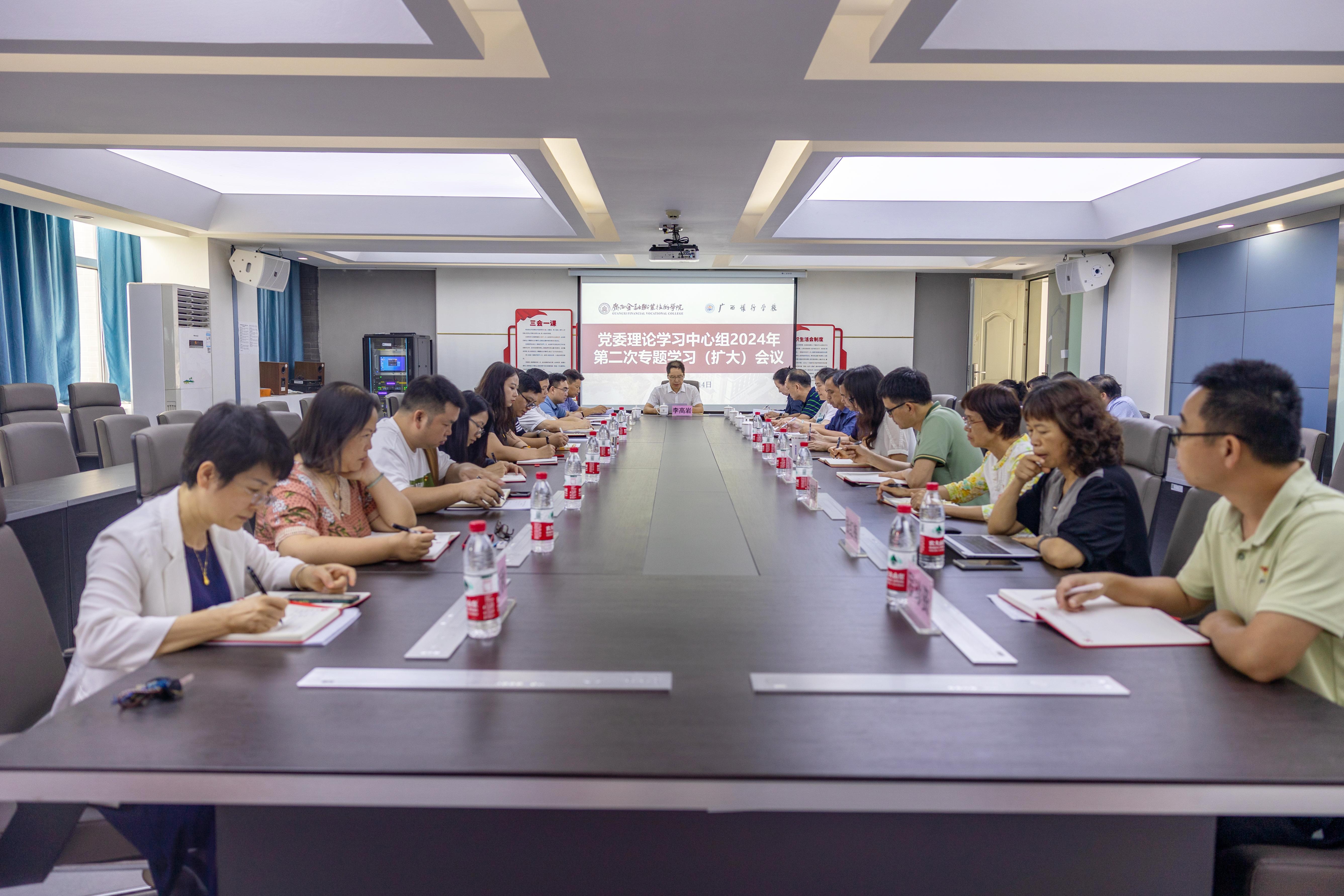 6月14日,万象城官网在西校区512会议室召开党委理论学习中心组2024年第二次专题学习(扩大)会议。党委理论学习中心组成员、各党支部书记、各部门主要负责人参加会议,莫海燕校长列席会议。会议由党委书记李高岩主持。