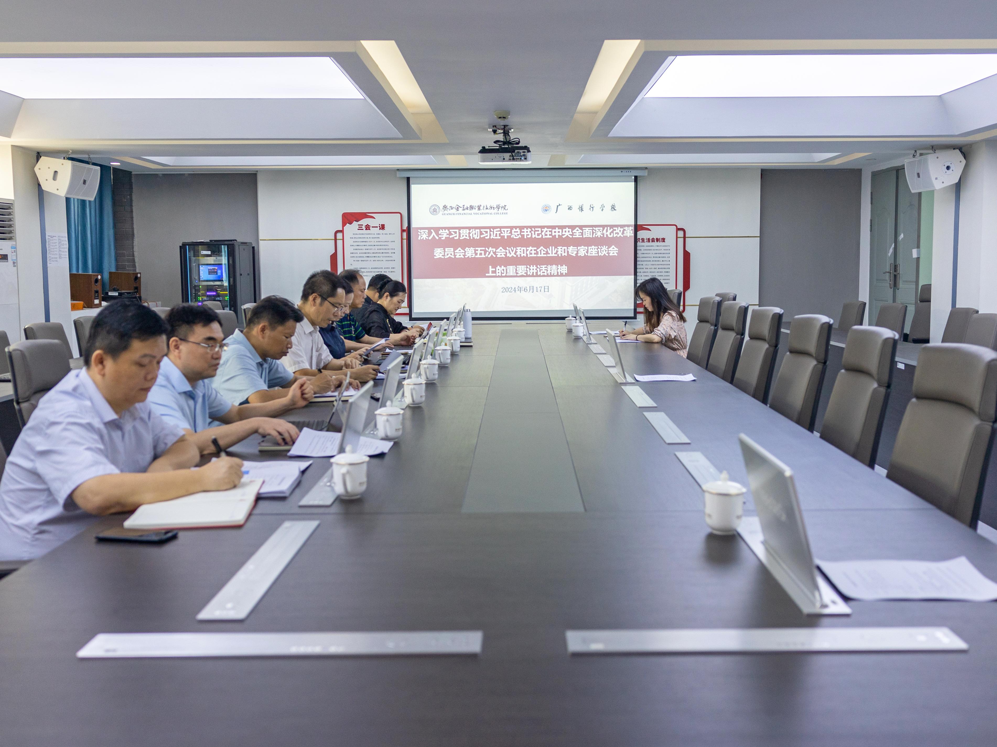 6月17日上午,万象城官网在西校区512会议室召开党委扩大会议,学习贯彻习近平总书记在中央全面深化改革委员会第五次会议和在企业和专家座谈会上的重要讲话精神。学校领导、党委委员、党委宣传部、组织人事处主要负责人及纪检监察室工作人员参加会议。党委书记李高岩主持会议并讲话。