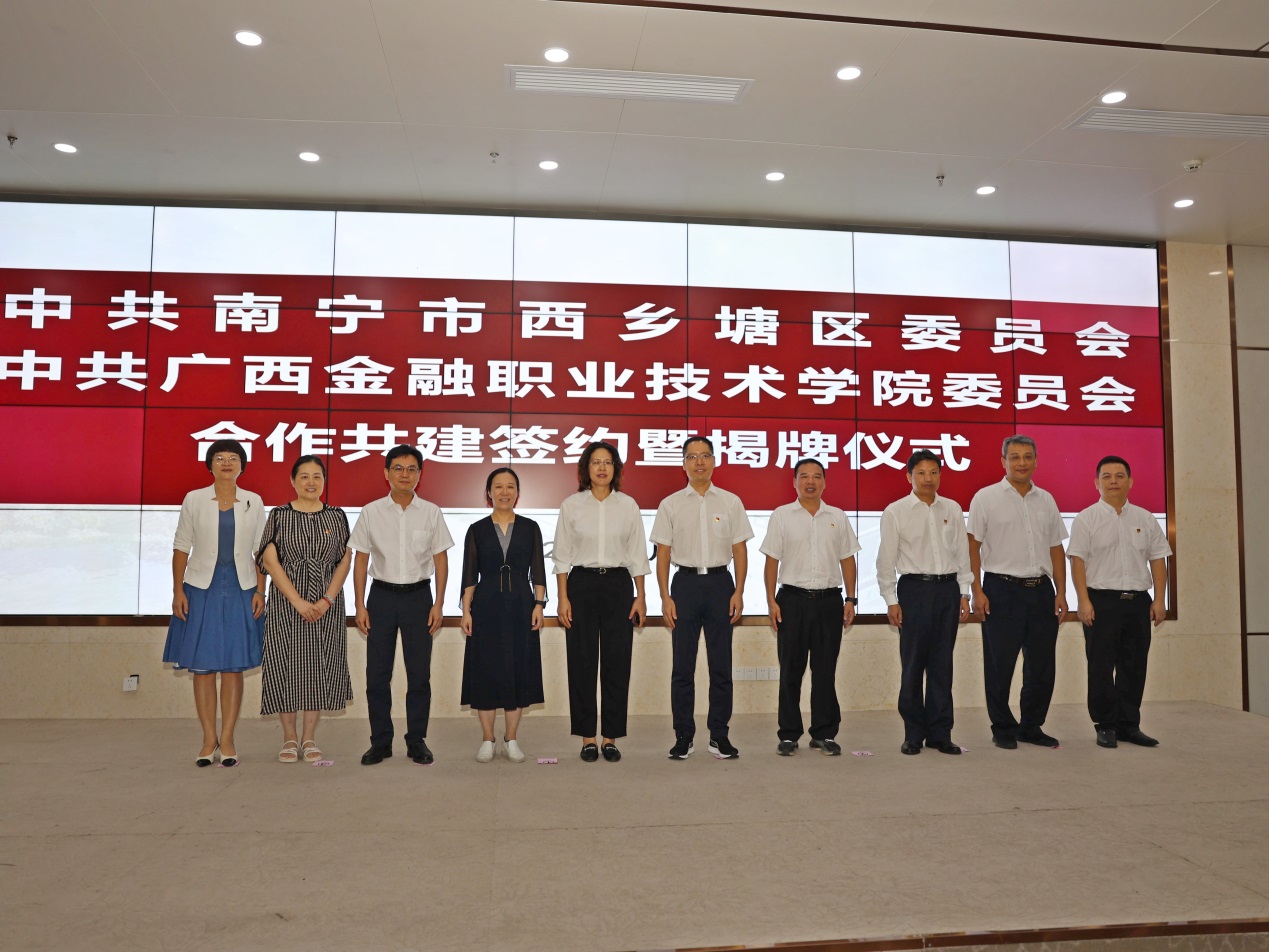 为进一步深化政校交流合作,发挥学校与地方政府各自优势,7月3日下午,万象城官网与西乡塘区合作共建签约暨揭牌仪式在西校区道德大讲堂举行。西乡塘区委书记李秋果、awc77万象城官网党委书记李高岩参加仪式并致辞,城区领导李君、谭哲、庞晓民、莫永新,学校领导莫海燕、刘华政参加活动。awc77万象城官网校长莫海燕主持本次活动仪式。