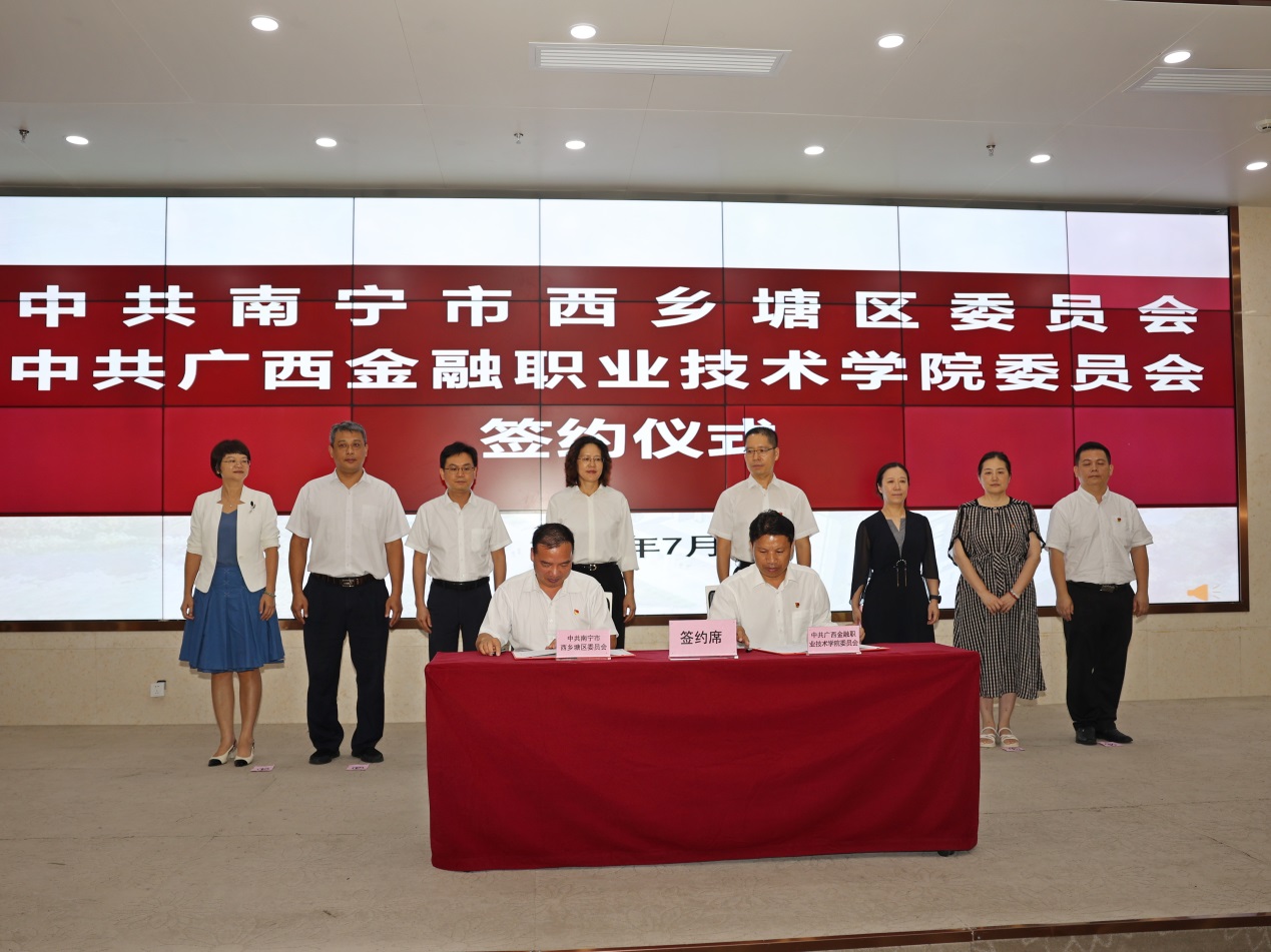 学校党委书记李高岩在发言中表示,万象城官网一直秉承校政企深度融合的办学理念,注重服务政府和企业,为地方输送应用型技术人才,为地方产业发展提供智力支持和高质量的社会服务。此次合作共建,不仅是万象城官网深化产教融合、城校合作的重要举措,更是我们服务地方经济社会发展、实现共赢发展的重要途径。希望以此次签约为契机,加强城校战略合作,发挥学校科研力量和资政平台、金融服务优势,为西乡塘区的经济社会发展注入新的活力和动力,为高等职业教育事业的繁荣发展作出新的贡献!