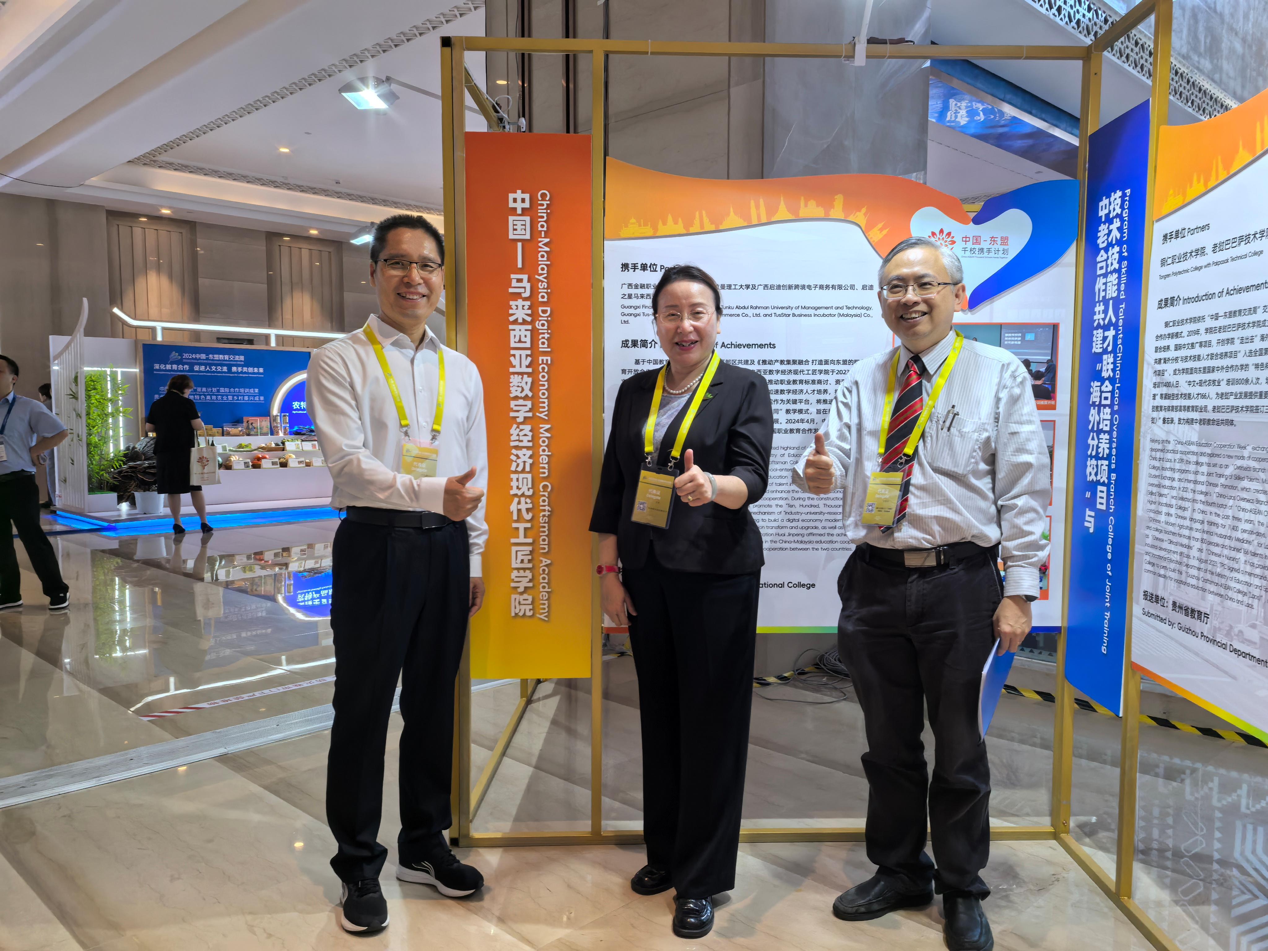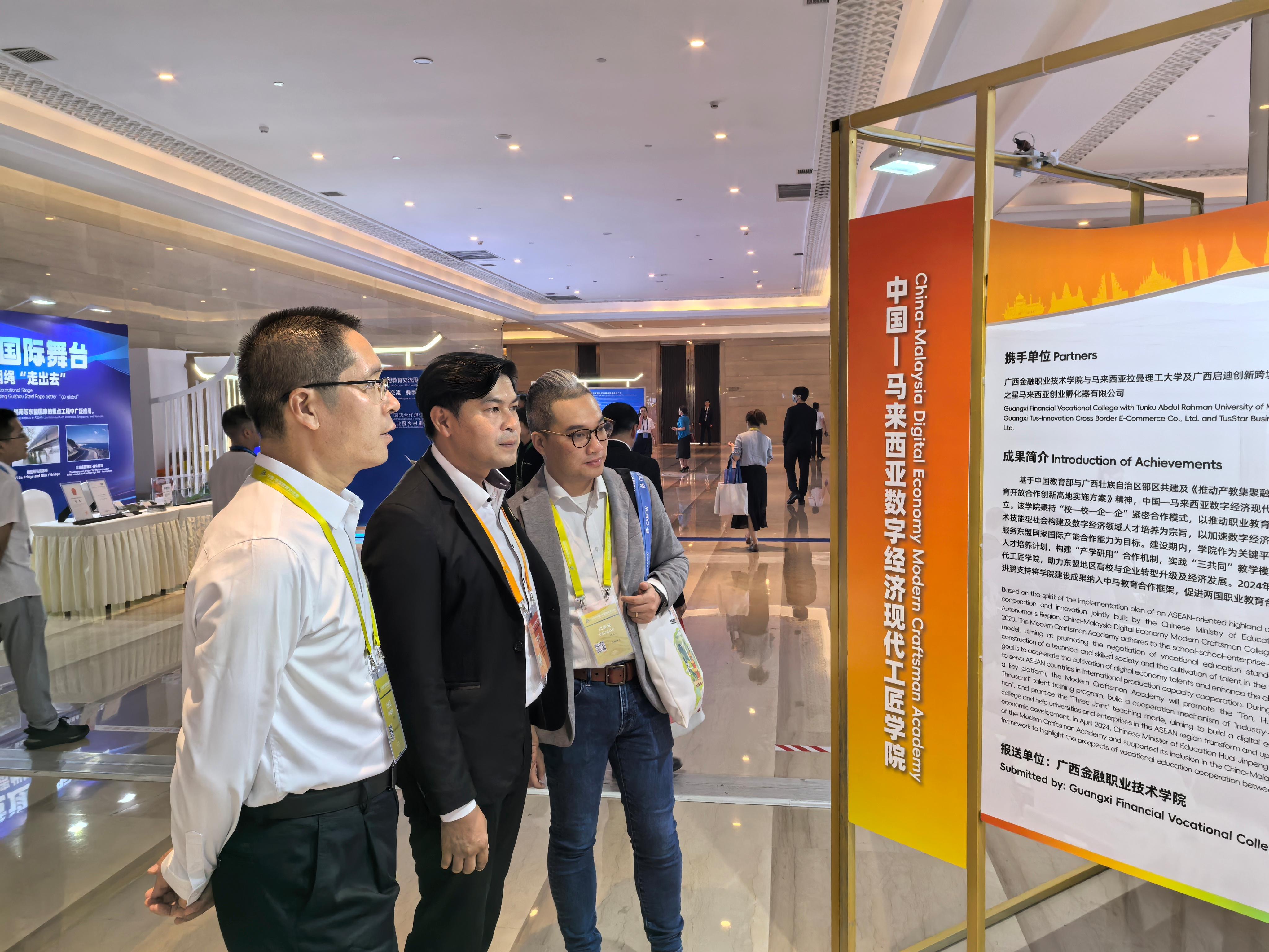 会议期间,中外嘉宾驻足参观“中国—马来西亚数字经济现代工匠学院”成果展位,对万象城官网对外合作办学成果予以高度评价。