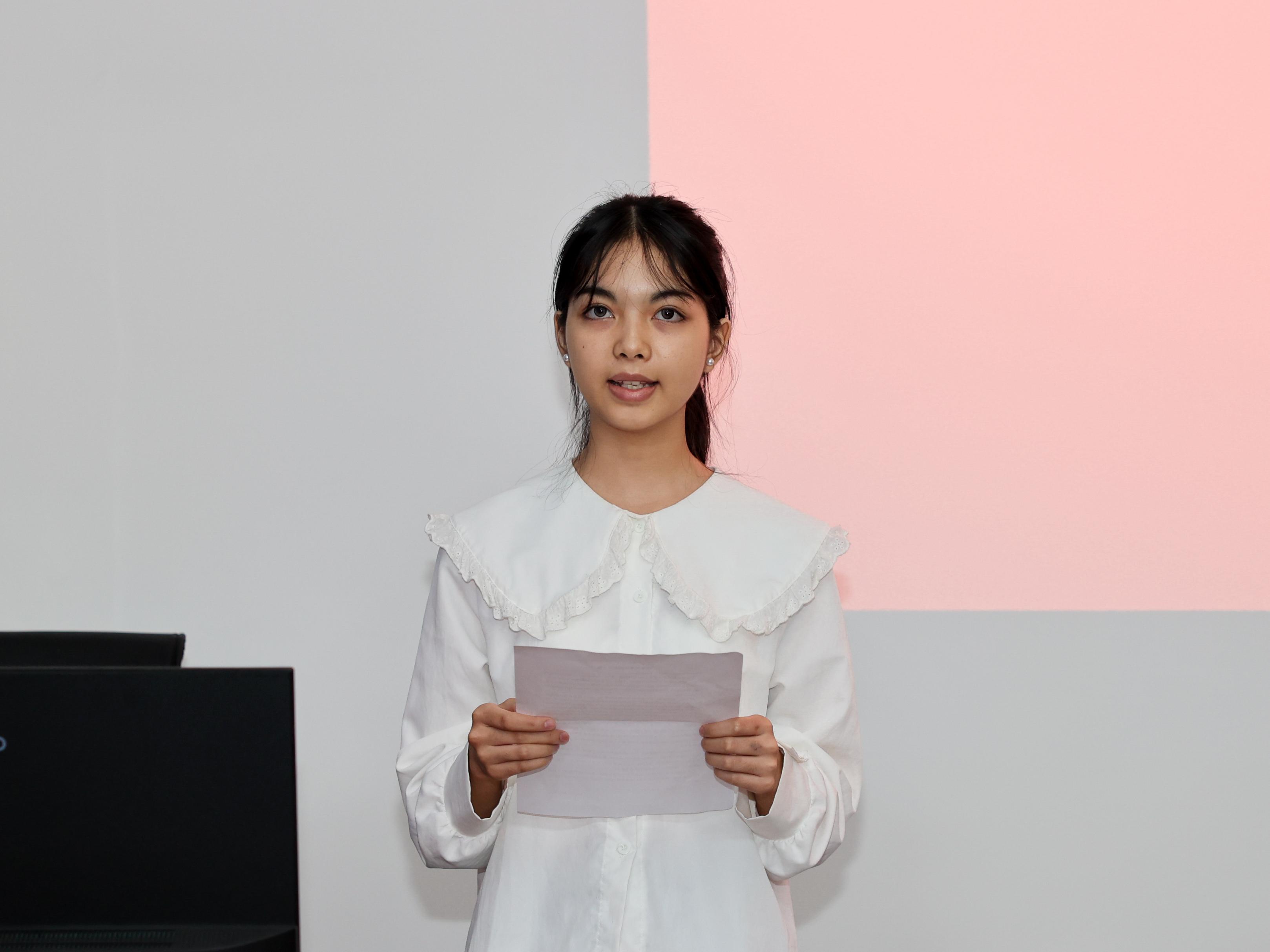 会计事务2402班林晓清同学作为新生代表发言,她感激学校、老师们的亲切关怀以及学姐、学长们的热情帮助,同时表示在未来的三年中职生活,努力学习,提升技能,为未来拼搏,在广西银行学校绽放青春光彩。