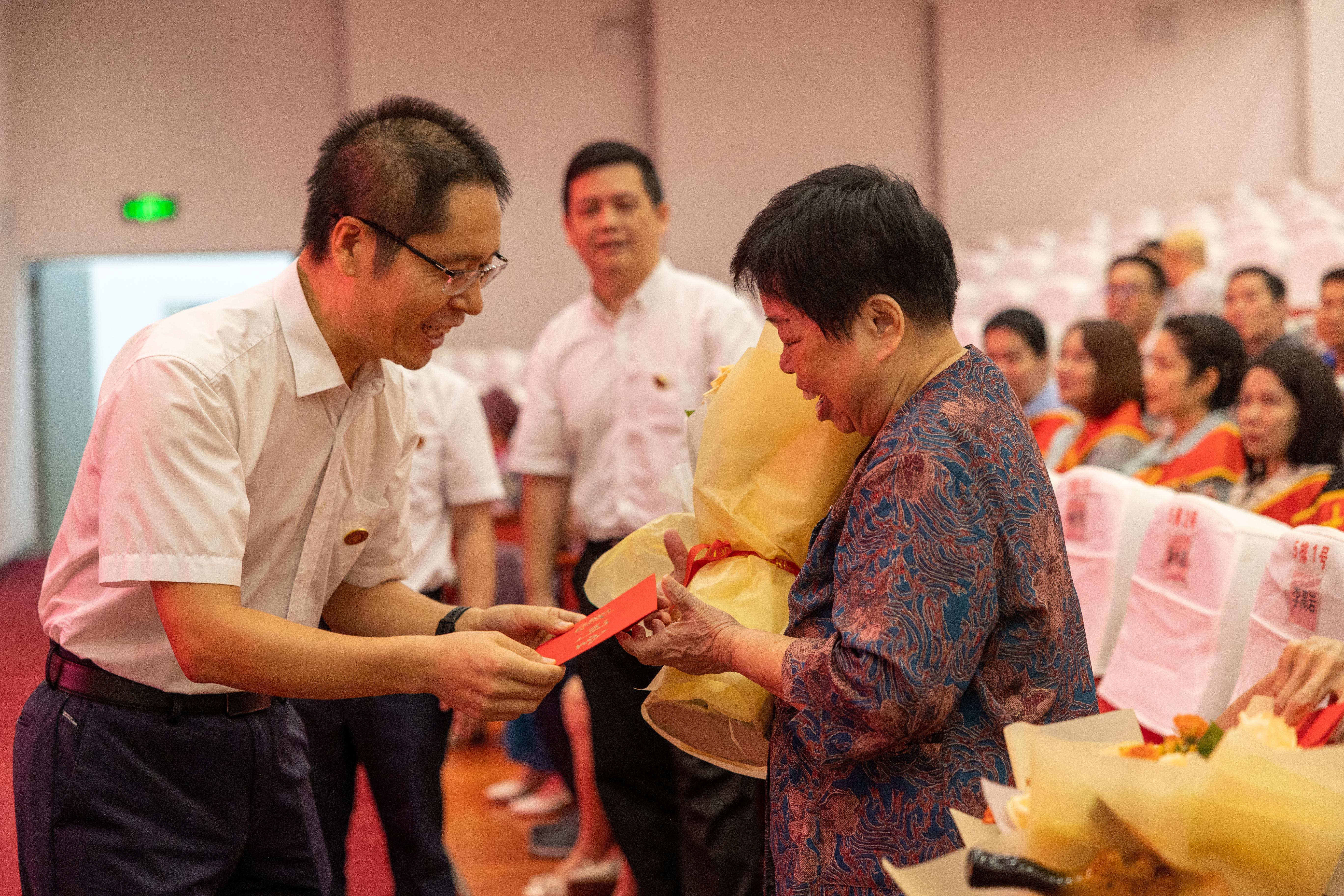 会上,学校党委书记李高岩为离退休教师代表发放慰问金并敬献鲜花,表达了学校对他们的深情祝福和感激之情。离退休教师代表表示感谢,并将继续关心支持学校的发展,为学校的发展建言献策。