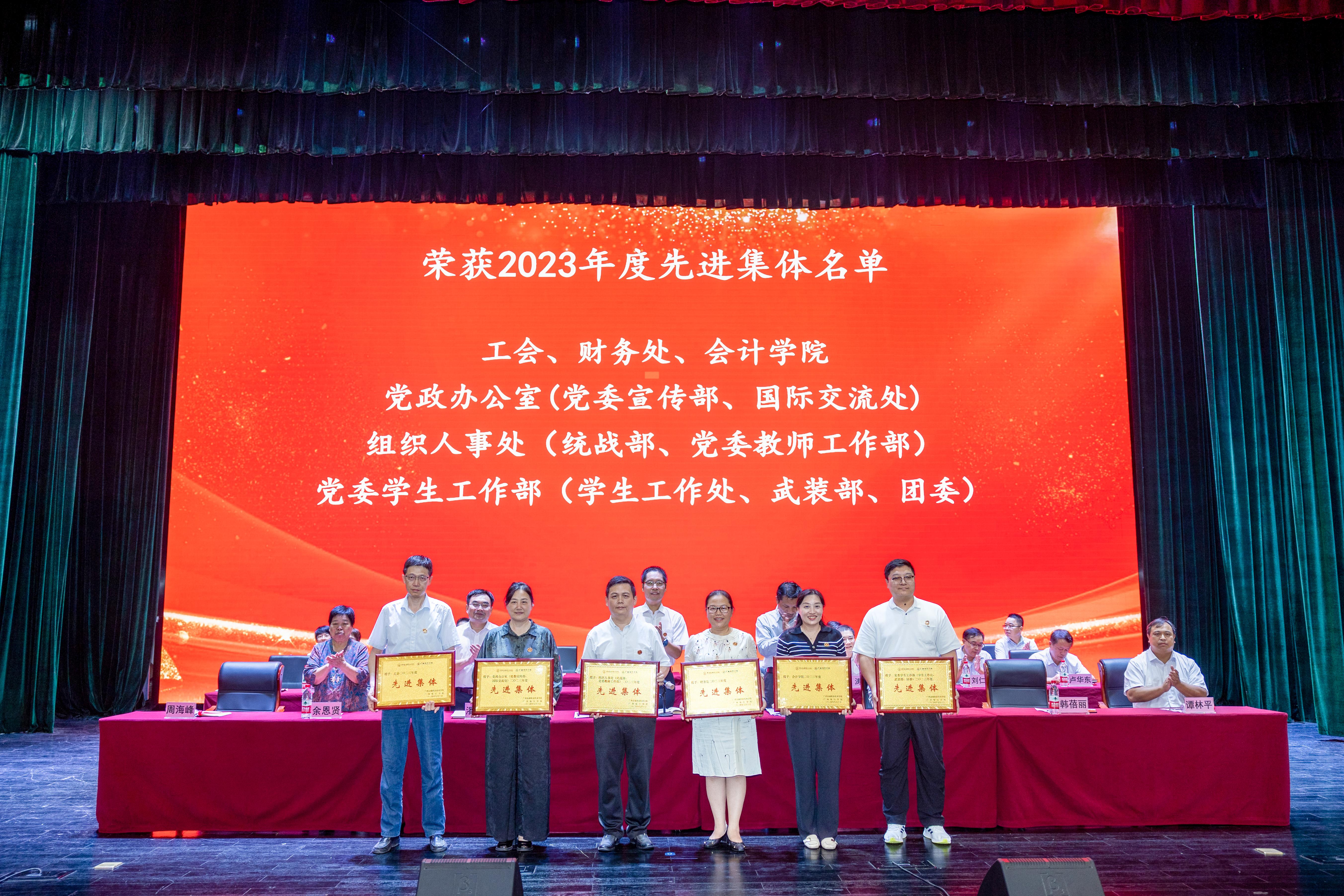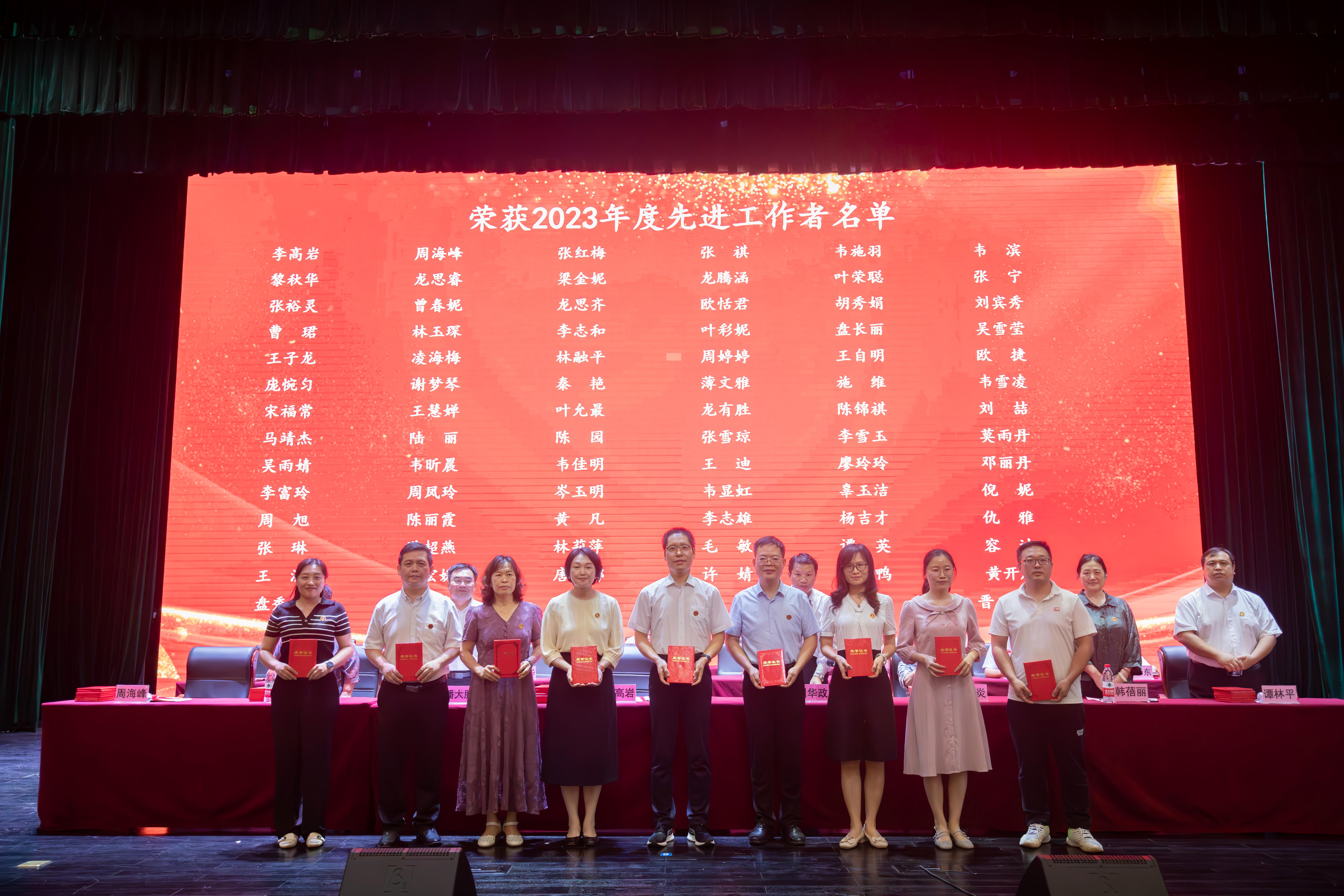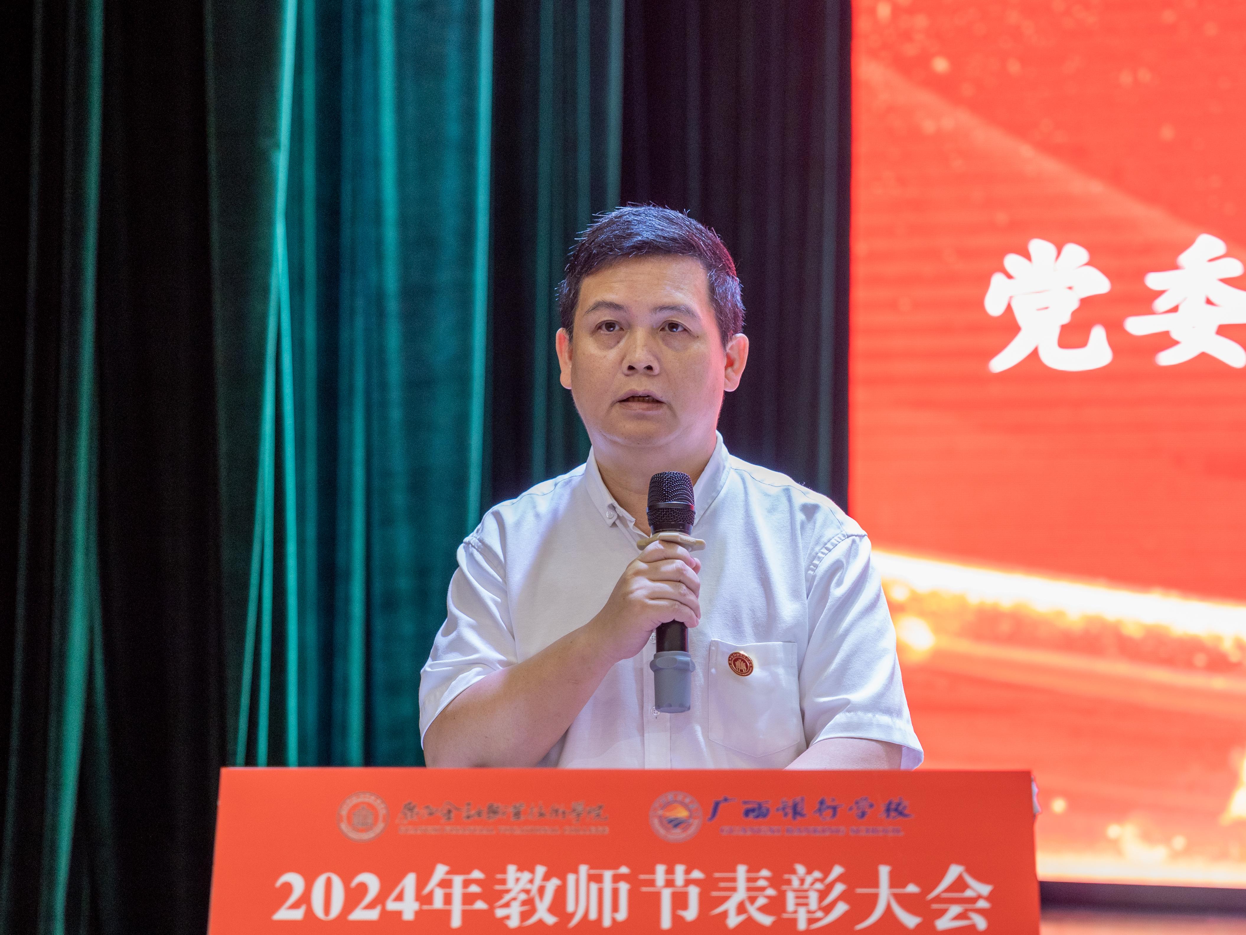 党委书记李高岩同志宣读《关于表彰2023年度先进集体的决定》《关于给校龄满30年的男教职工颁发荣誉证书的决定》《关于表彰awc77万象城官网(广西银行学校)2023—2024学年“十佳教师”的决定》。