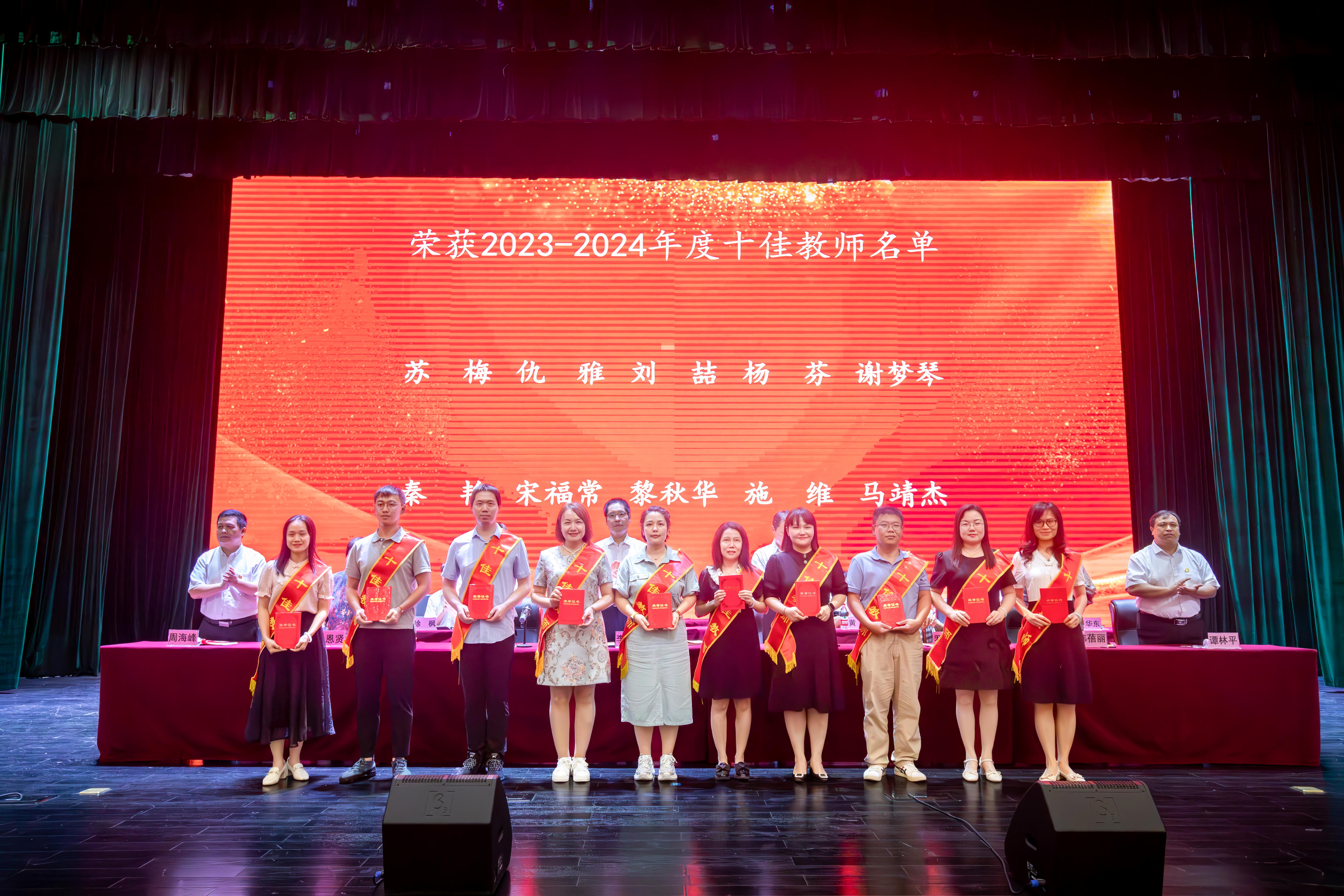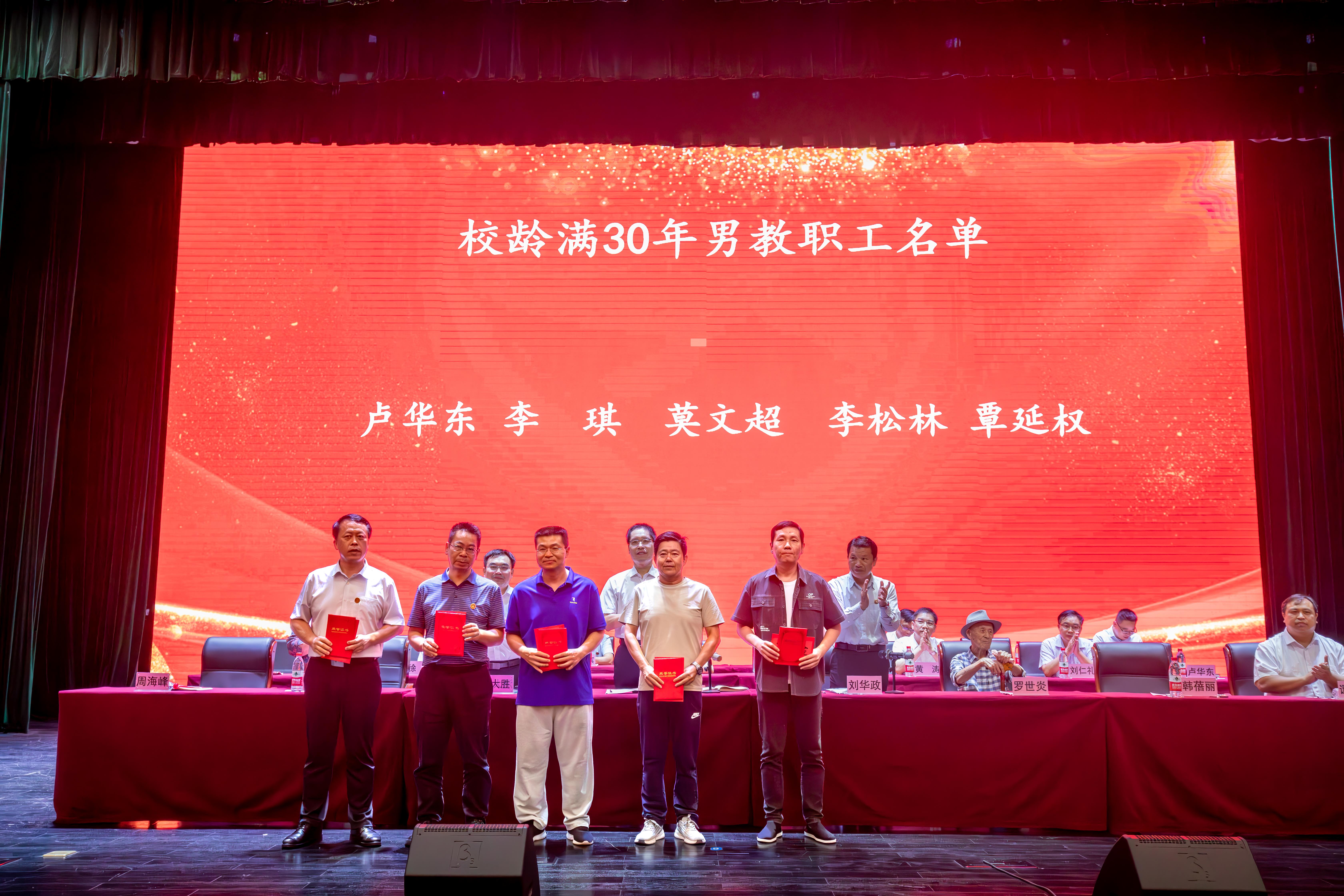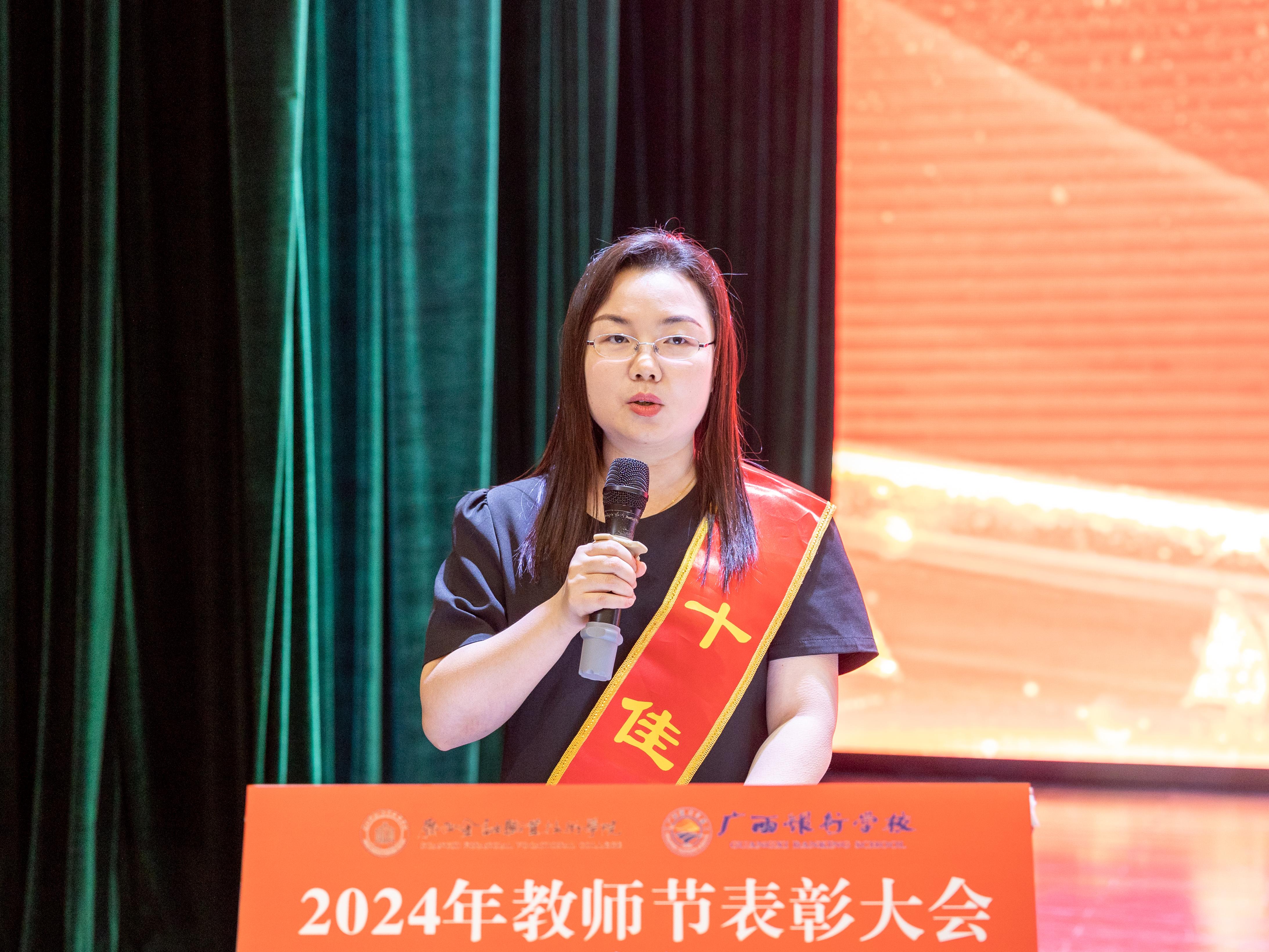 党委书记李高岩同志宣读《关于表彰2023年度先进集体的决定》《关于给校龄满30年的男教职工颁发荣誉证书的决定》《关于表彰awc77万象城官网(广西银行学校)2023—2024学年“十佳教师”的决定》。