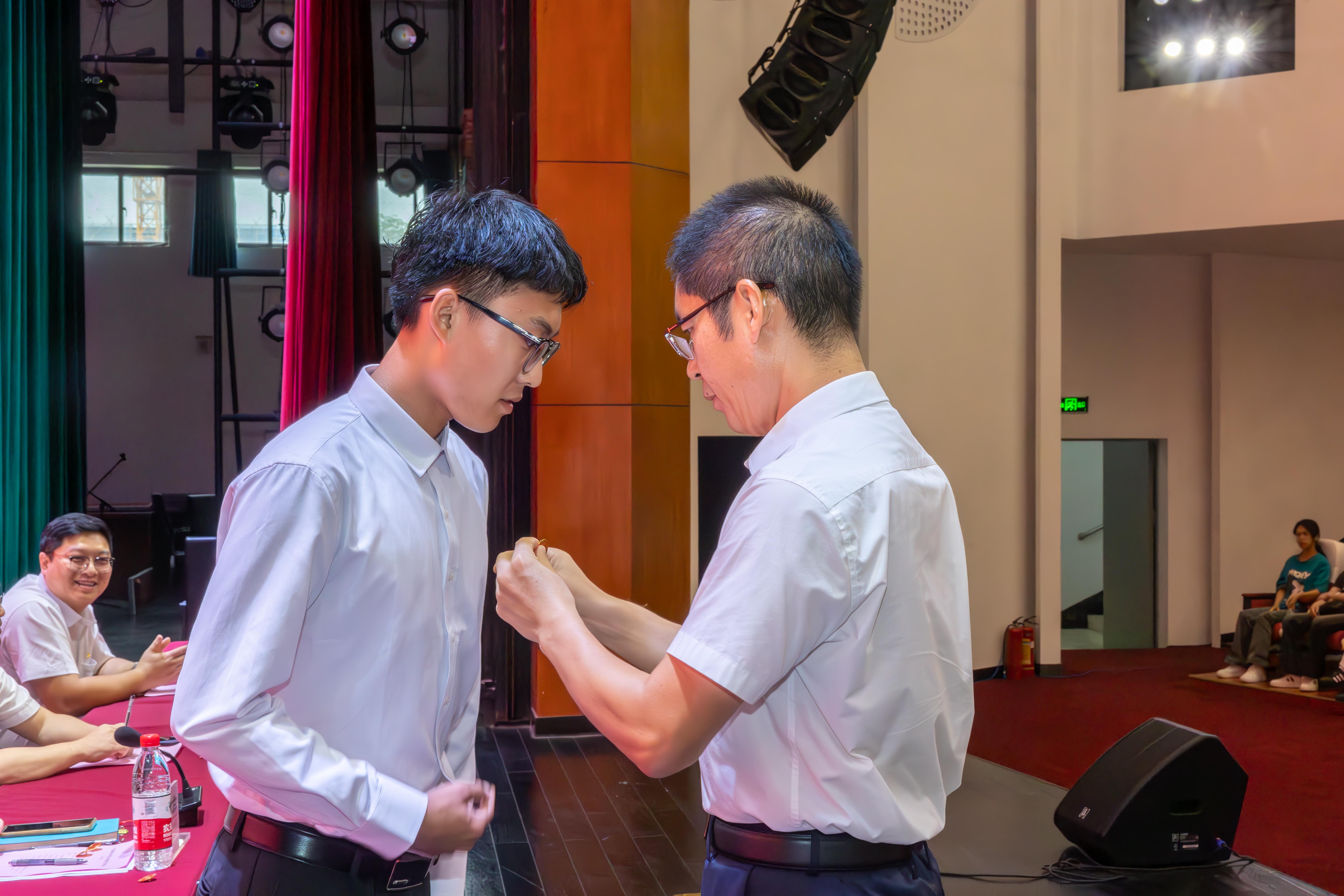 校领导为学生代表佩戴校徽
