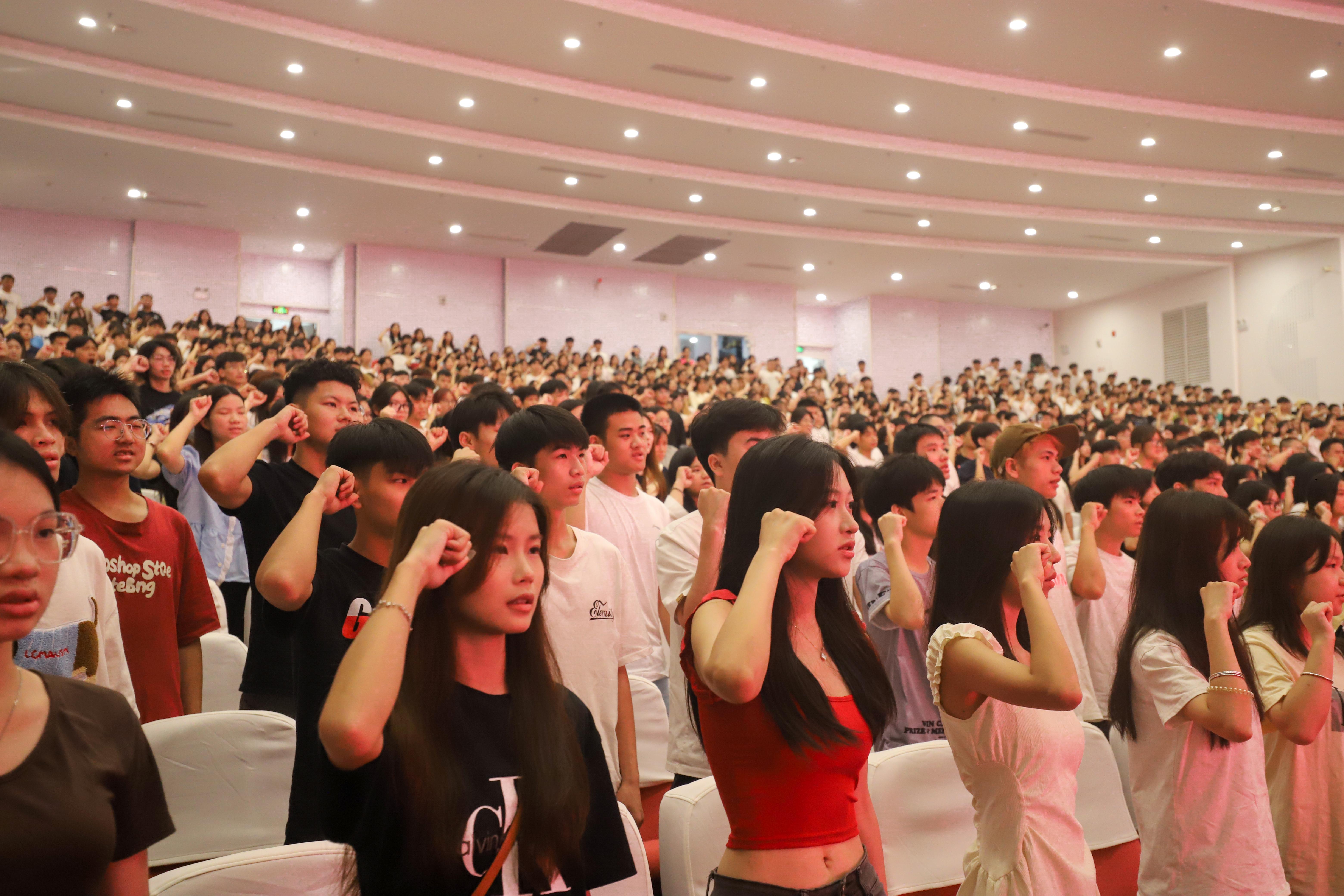 老生代表带领全体新同学宣读《入校誓词》,开学典礼在全体新同学铿锵有力的宣誓中圆满结束。