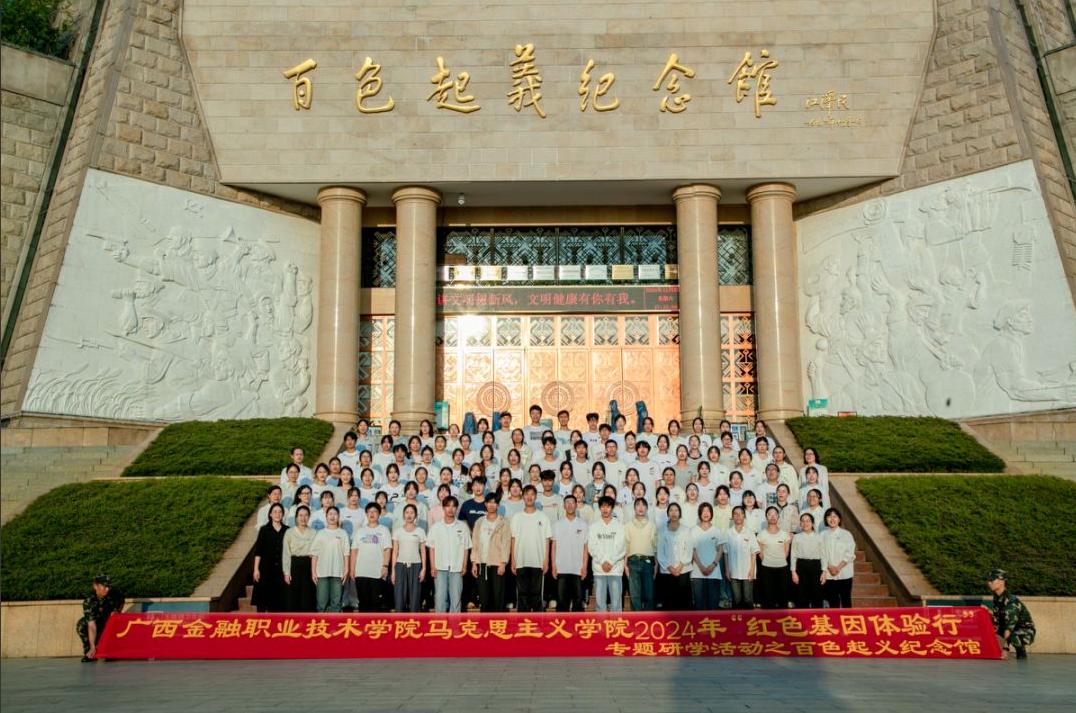 为深入实施时代新人铸魂育人工程,传承好红色基因,推动党史学习教育常态化长效化,教育引导师生感悟中国共产党人精神谱系,激发广大学生在体悟中传承红色基因、赓续红色血脉,努力成长为担当民族复兴重任的时代新人。2024年11月2日,万象城官网马克思主义学院党总支兵分两路,带领学生到百色、全州开展“红色基因体验行”专题研学和主题党日活动。