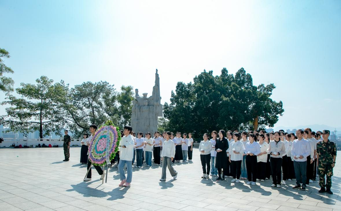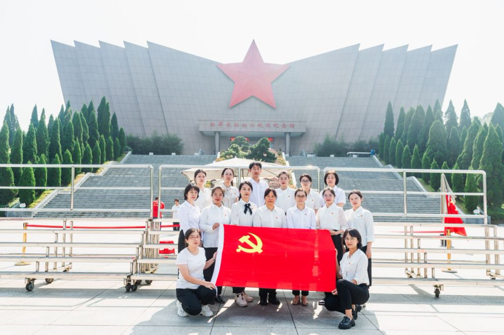 赴全州开展活动的师生,来到红军长征湘江战役纪念馆参观学习,讲解员对湘江战役进行详细描述,全面、系统地介绍红军长征的整个历程和在中国共产党的坚强领导下我国所取得的辉煌成就。纪念馆内的历史照片、史料文物,重现了当年战争的惨烈,让师生更加深刻地理解了革命精神的伟大和崇高。随后,师生们前往纪念林开展祭扫活动,烈士碑园青松苍翠,庄严肃穆,学生代表敬献花篮,全体成员默哀致敬。党员同志整齐排列,高举右拳,重温入党誓词,再一次接受了深刻的党性洗礼。活动过程中,党员同志就革命精神话题进行了深刻交流,老师对学生进行了现场教学。