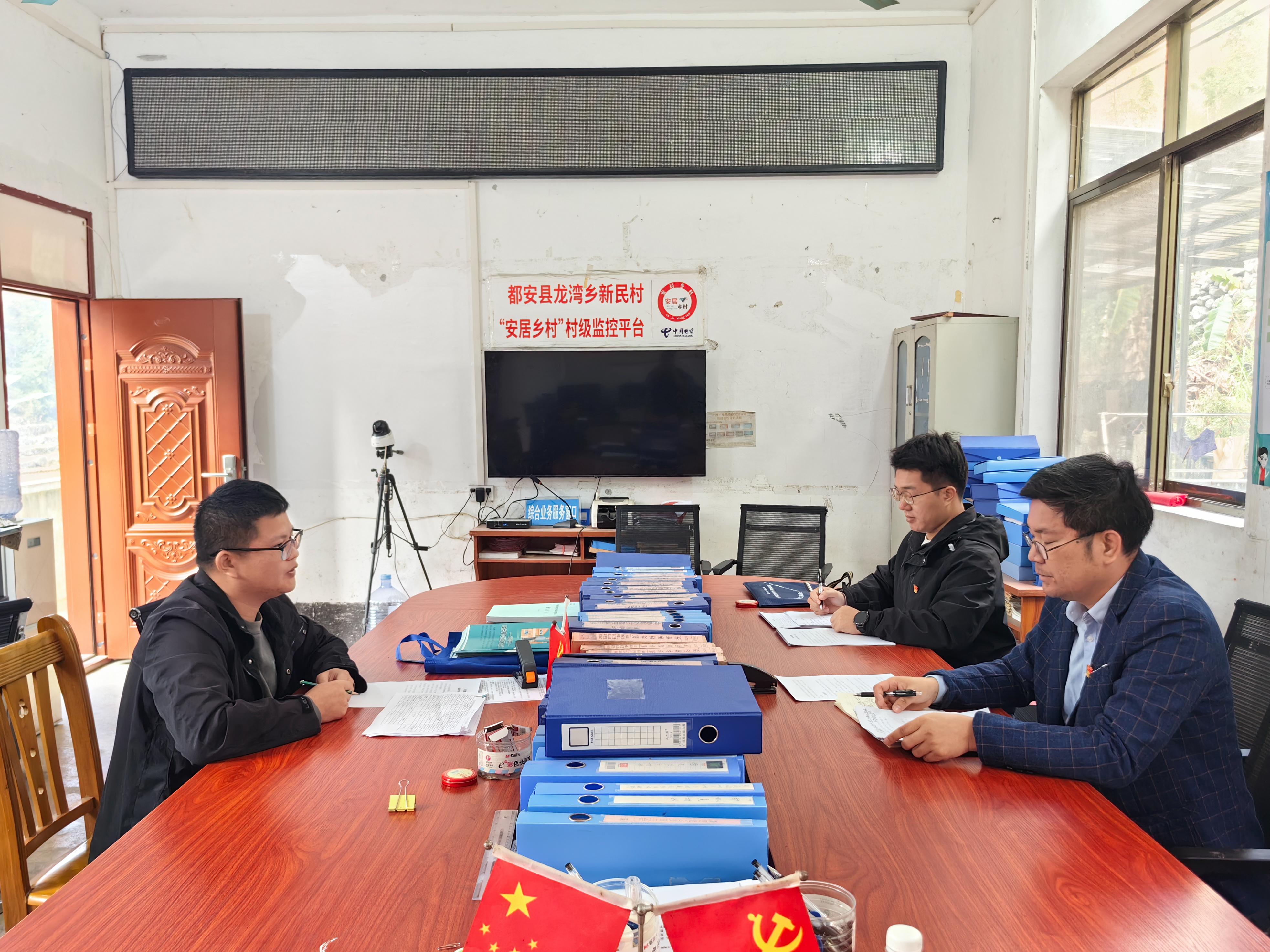 与新民村村干部交谈