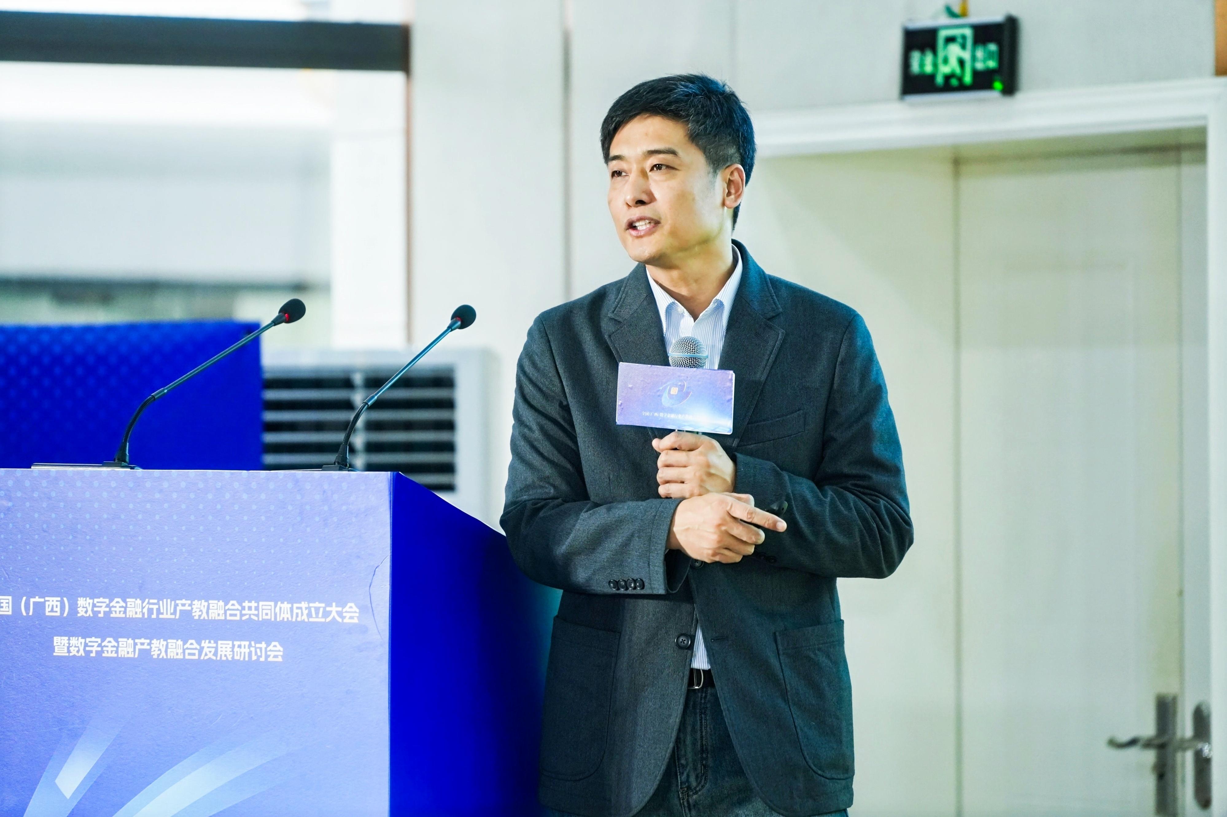 广西财经学院副校长唐红祥表示,数字金融产业的快速发展对金融人才培养和教育模式提出新要求,产教融合成为培养高素质数字金融人才、推动行业高质量发展的关键。广西财经学院作为共同体牵头单位,将秉持开放合作、互利共赢的理念,以开放姿态、务实作风,积极响应号召,探索新模式、新路径,搭建创新平台,深化合作,推动资源共享、优势互补。