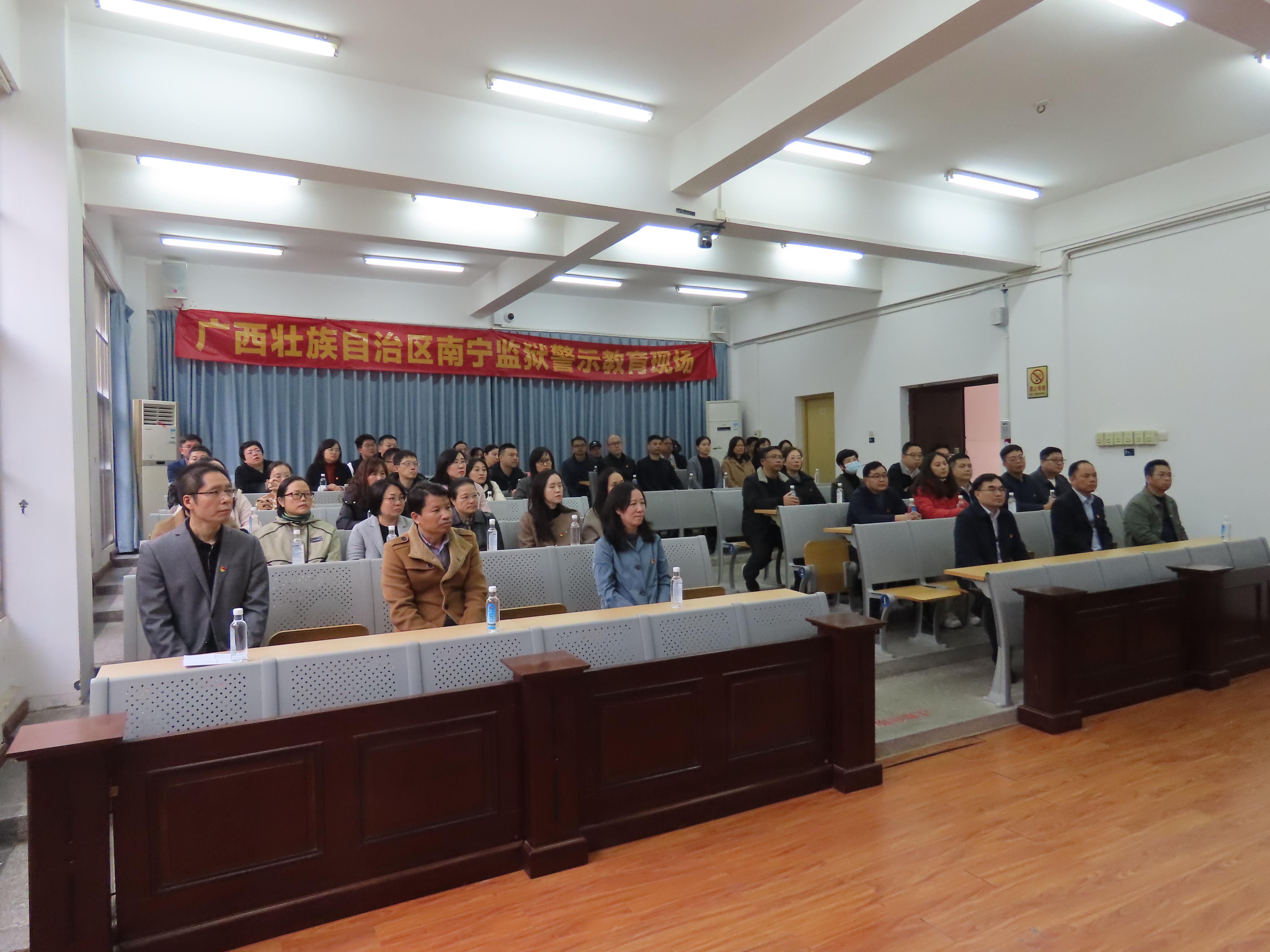 在监狱干警的引导和讲解下,大家通过实地了解服刑人员的劳动、生活等场所,深刻认识到了一墙之隔的天壤之别,深切感受到了自由的珍贵。全体人员还集中观看了近年来广西领导干部职务犯罪警示教育展板和职务犯罪服刑人员忏悔警示纪录片。一个个真实鲜活的案例、一段段痛心疾首的忏悔,一句句发自肺腑的悔悟,给大家上了一堂深刻的警示课,注入了一针强效“防腐剂”。