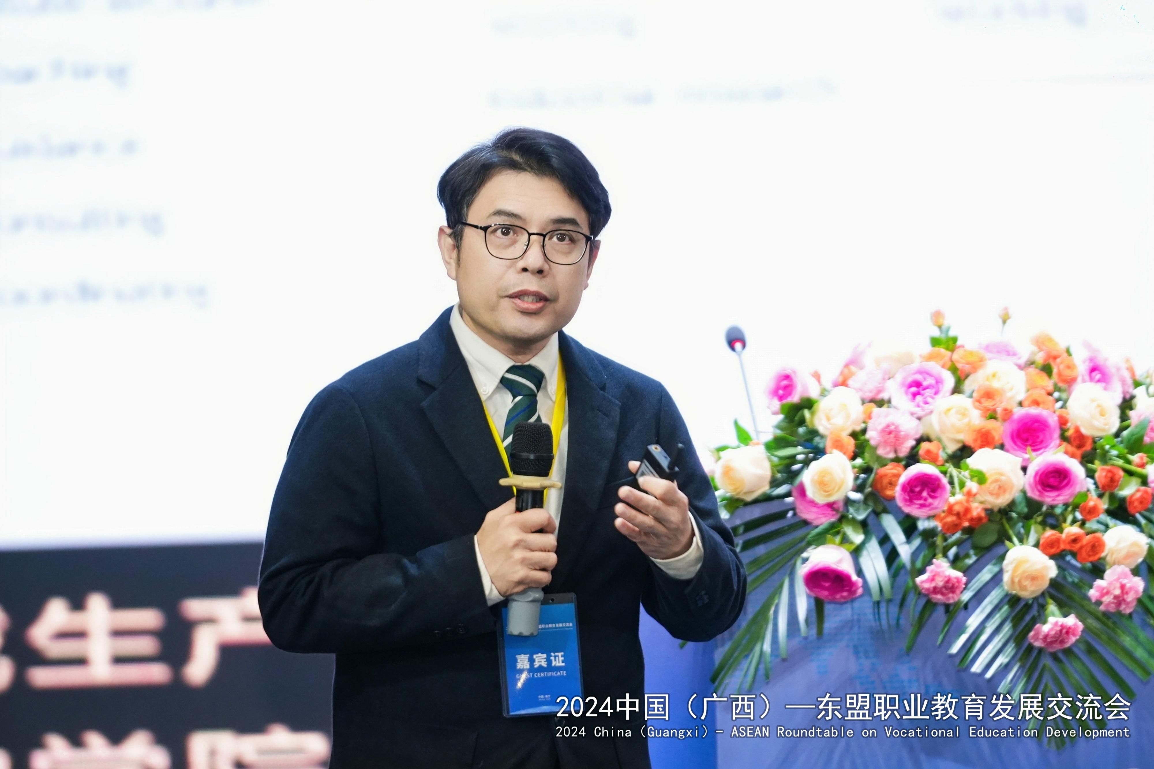 万象城官网党委书记李高岩结合中国—东盟现代工匠学院的建设经验和成效,探讨了共建中国—东盟现代工匠学院的awc77万象城官网“教随产出”新模式,为推动职业教育国际化和区域教育合作提供了实用的参考和经验。