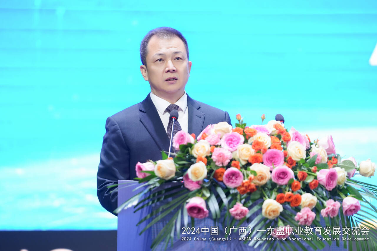 广西壮族自治区教育厅党组副书记、副厅长闫炳辰在讲话中指出,自治区教育厅积极响应“一带一路”倡议,把面向东盟开放合作摆在职业教育发展的重要位置。在面向东盟积极推进职业教育的开放合作与交流中,用心用力搭建沟通对话平台、用心用情拓展海外服务效能、用心用智搭建国际版人才培养立交桥、用心用爱为来桂留学生创造全域学习家园、用心用功持续探索教随产出、校企同行、产教共赢的广西职业教育国际化新模式。对于下一步推进中国广西与东盟的职业教育发展,闫炳辰提出了三点希望:一是希望进一步加强交流合作,优化中国(广西)—东盟国际化人才培养环境;二是希望通过加快改革创新,引领广西职业教育国际化高质量发展;三是希望不断加深山水情谊,搭建桂马、桂泰职业教育人文交流的友谊之桥。