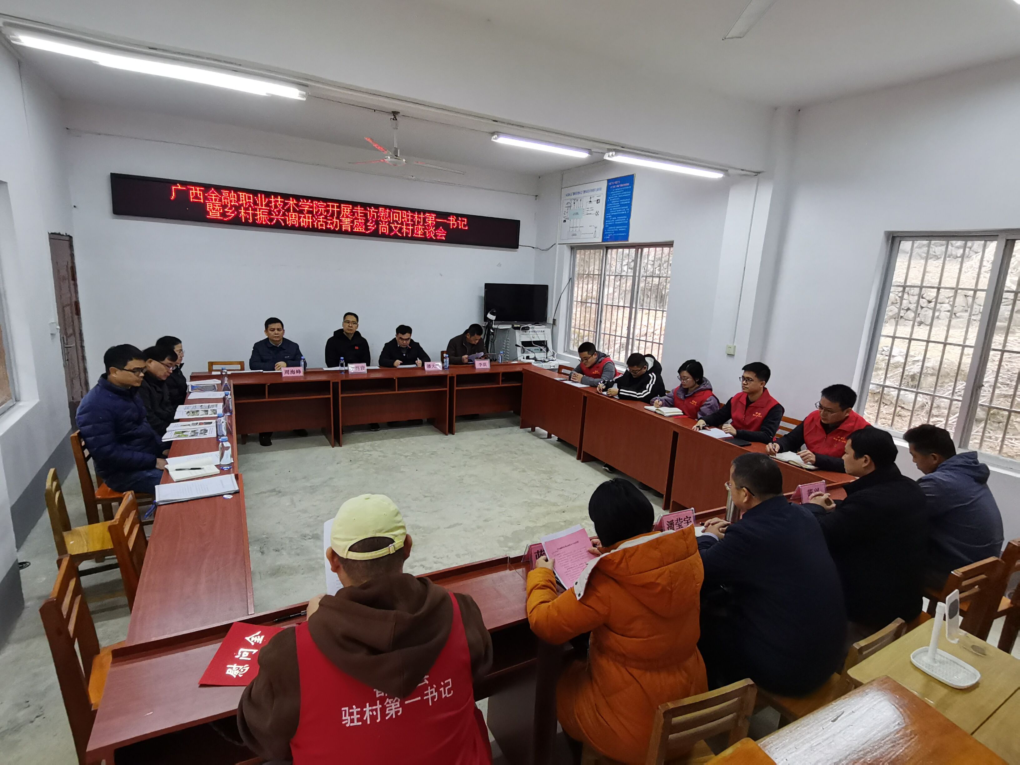 会上,李高岩书记为第一书记发放慰问金,听取2024年驻村帮扶工作汇报,与县、乡、村各级领导共同谋划2025年乡村振兴工作。潘莹宇副主任高度赞扬学校的结对帮扶成效,充分肯定了第一书记的驻村帮扶工作。蓝艳恒书记对乡村振兴具体业务进行了指导,与校领导就下一步结对帮扶工作进行了交流。