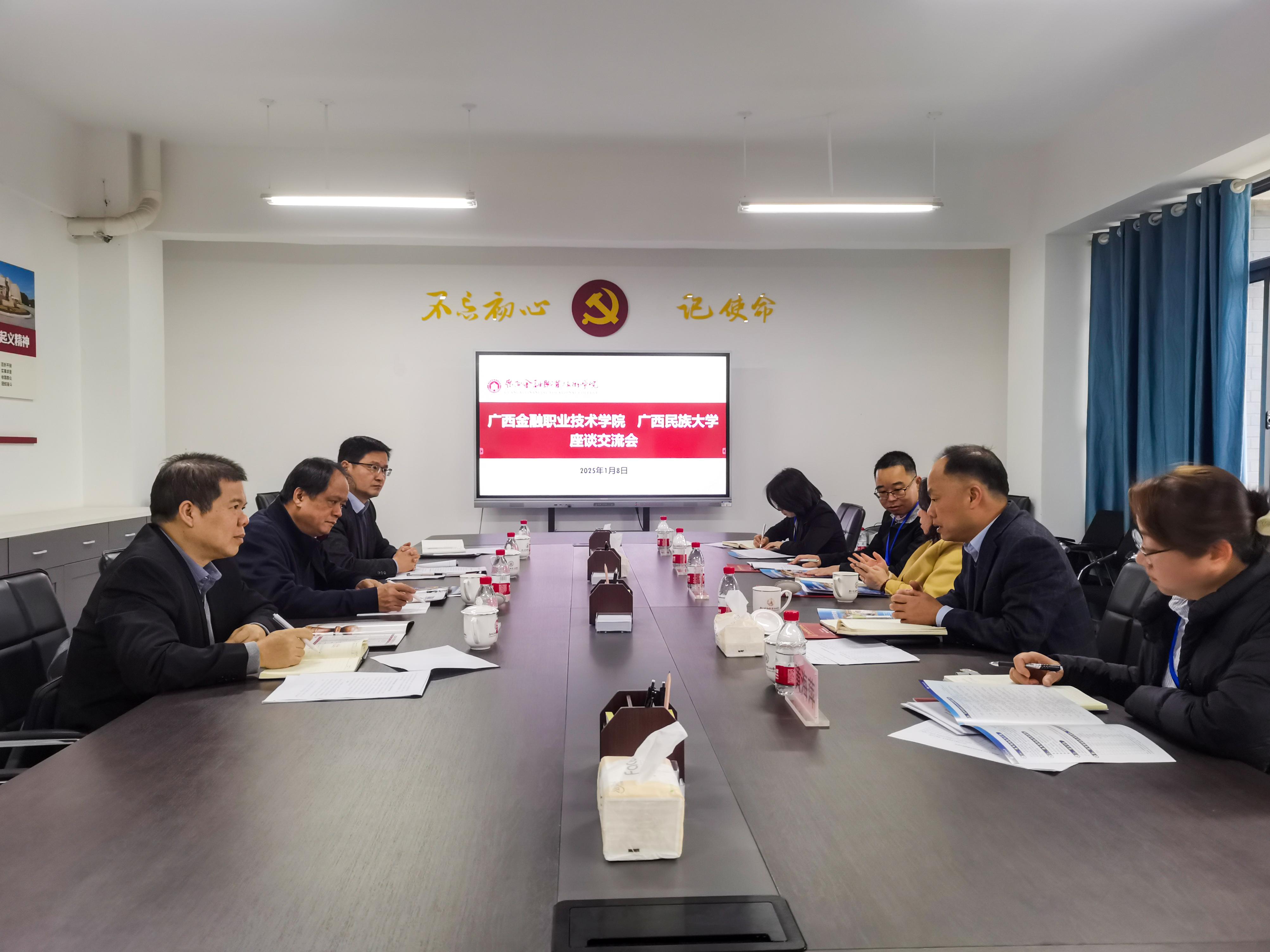 1月8日上午,广西民族大学党委常委、副校长蔡高根等一行四人到万象城官网交流座谈。万象城官网校长莫海燕、副校长谢沛善、培训与继续教育学院院长罗珍资出席座谈会。