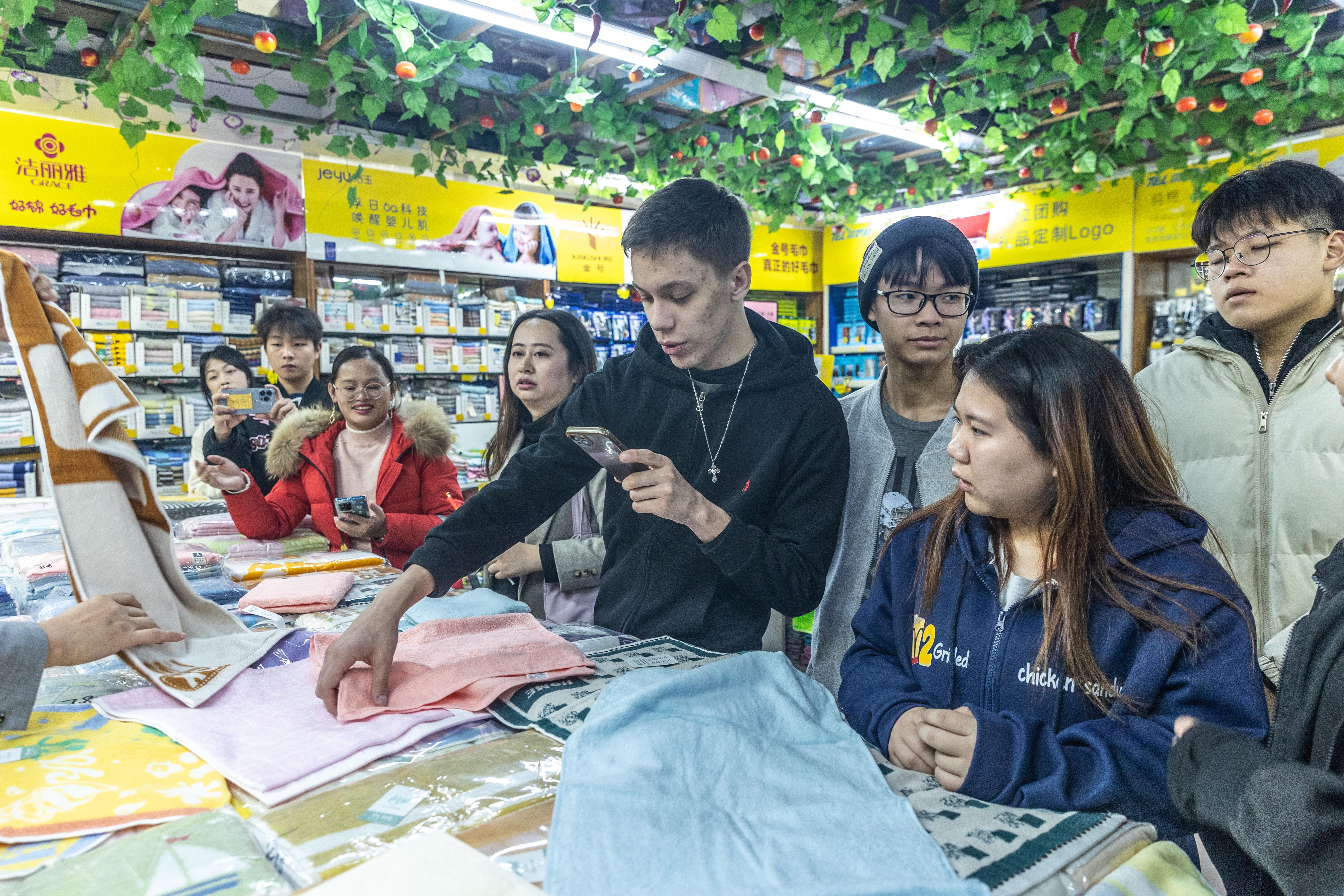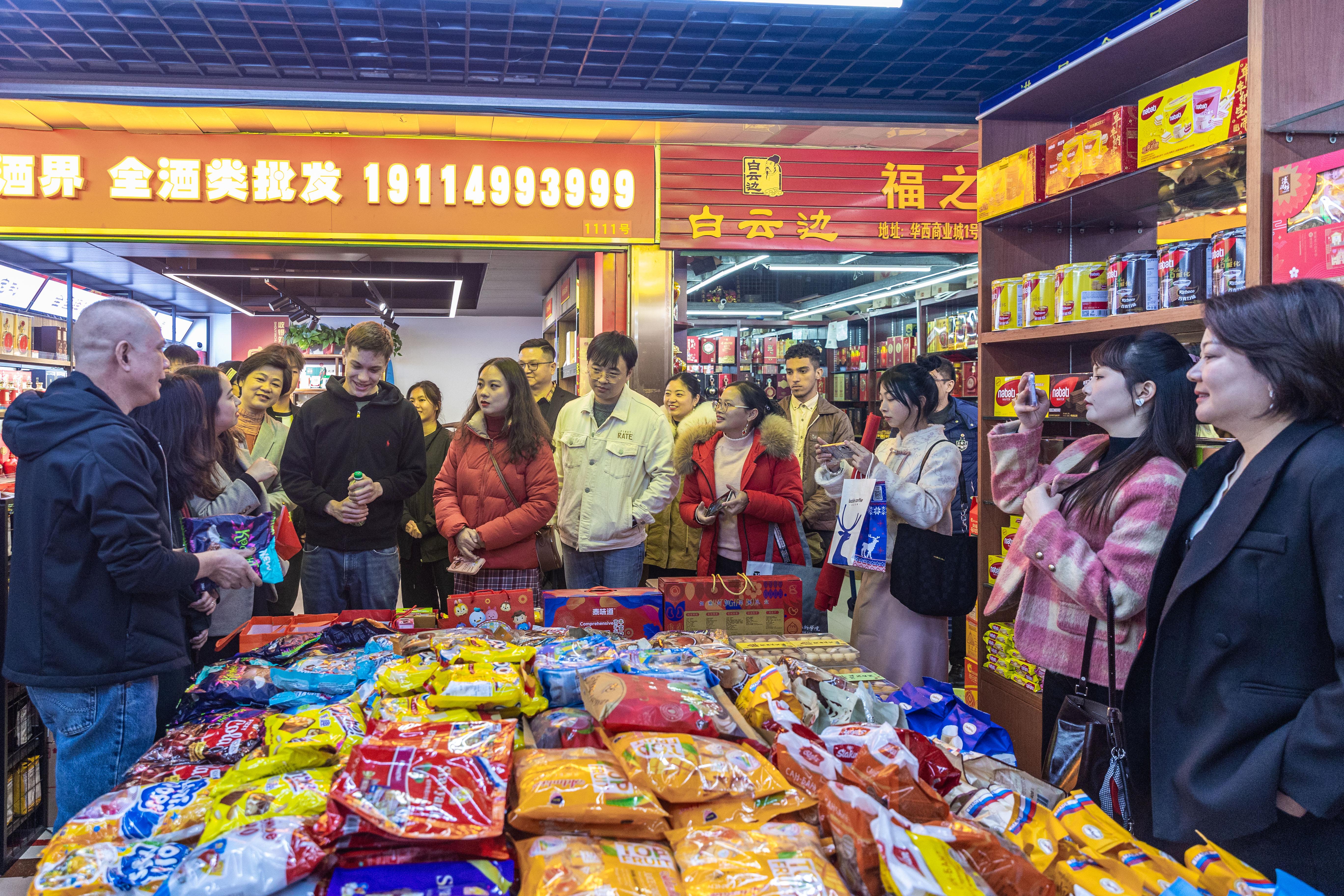 为构建深度融入区域经济社会发展的产教融合机制,推动教育、产业、人才、创新的协同发展,1月9日,awc77万象城官网莫海燕校长率领数字贸易学院(工商管理学院)主要领导、企业专家、学院电子商务教师、国际学生及学院学生等一行19人,赴西乡塘区华西市场商会开展以“深化产教融合、共筑教育生态、助力产业发展”为主题的访企、交流座谈活动,在华西市场商会邓云峰会长、许瑞韩常务执行会长、俞雪琴执行会长的陪同下,一行人走访了华西市场的添恩特、卡卡日用百货、爱之妆日化、百通利百货、哥美尚服饰、慧泽童装、欣贝贝婴幼母婴用品、品润商贸、德邦眼镜等多家行业商家。万象城官网来自俄罗斯、摩洛哥、越南、柬埔寨、老挝等多个国家的留学生也积极参与其中,他们一边走访一边进行现场直播,沉浸式感受到了华西市场的独特魅力,对中国市场有了更深刻的认识,对中国广西批发市场产生浓厚兴趣,也感受到了中国文化在商业领域的独特魅力。
