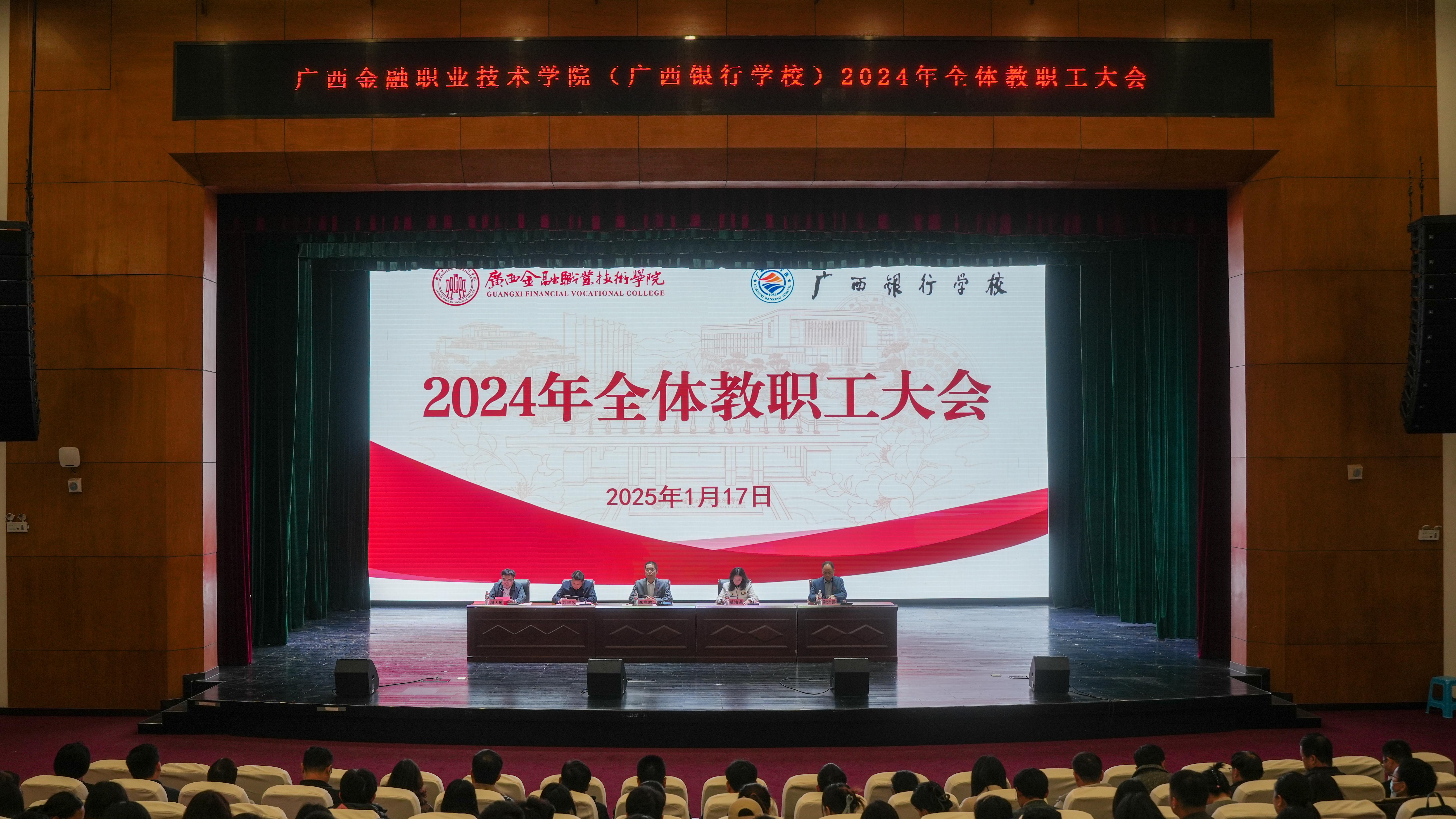2025年1月17日,万象城官网在西校区国际会议中心召开awc77万象城官网(广西银行学校)2025年全体教职工大会。学校领导出席会议,全体教职员工参加会议。大会由副校长潘大胜主持。