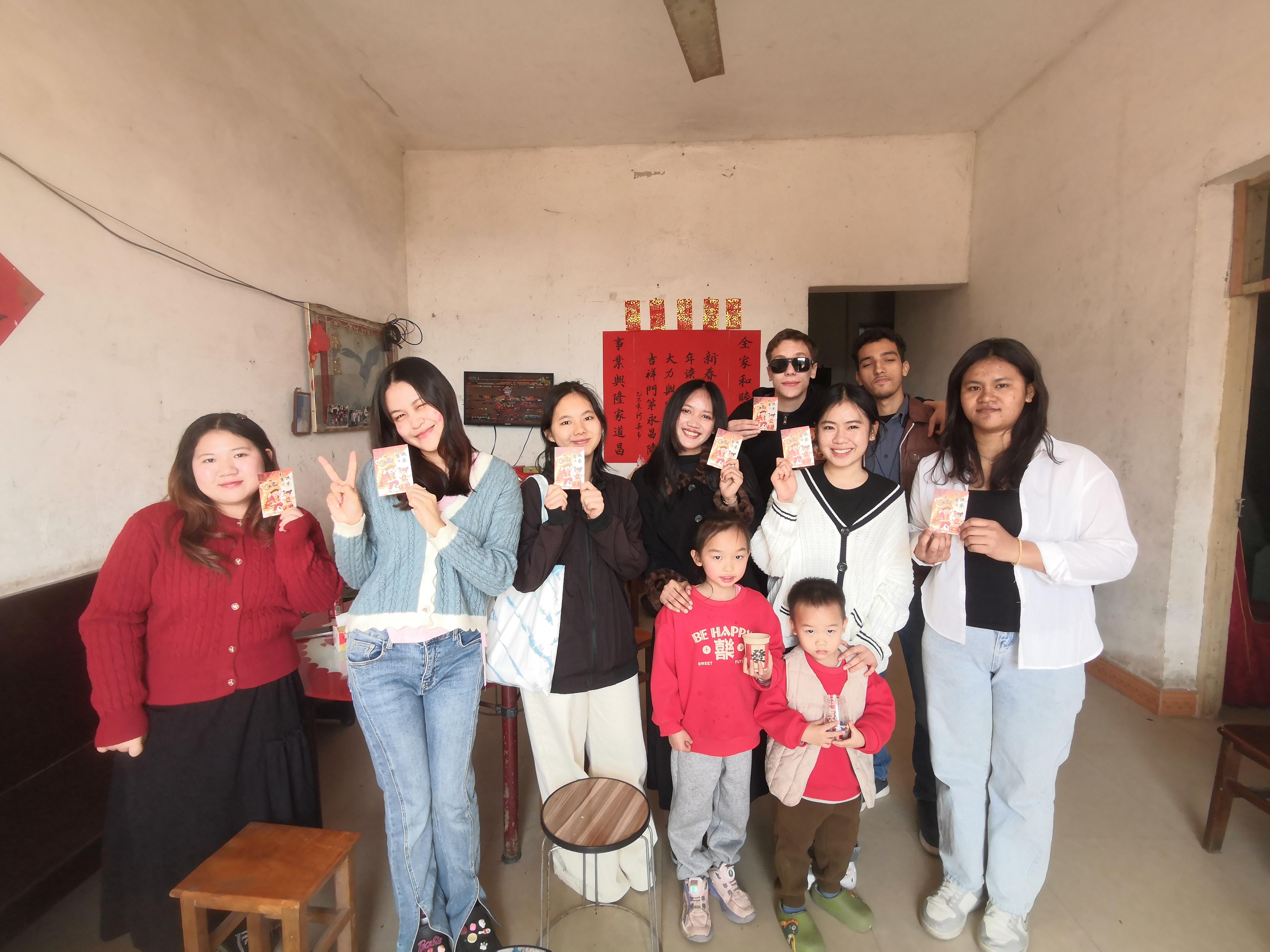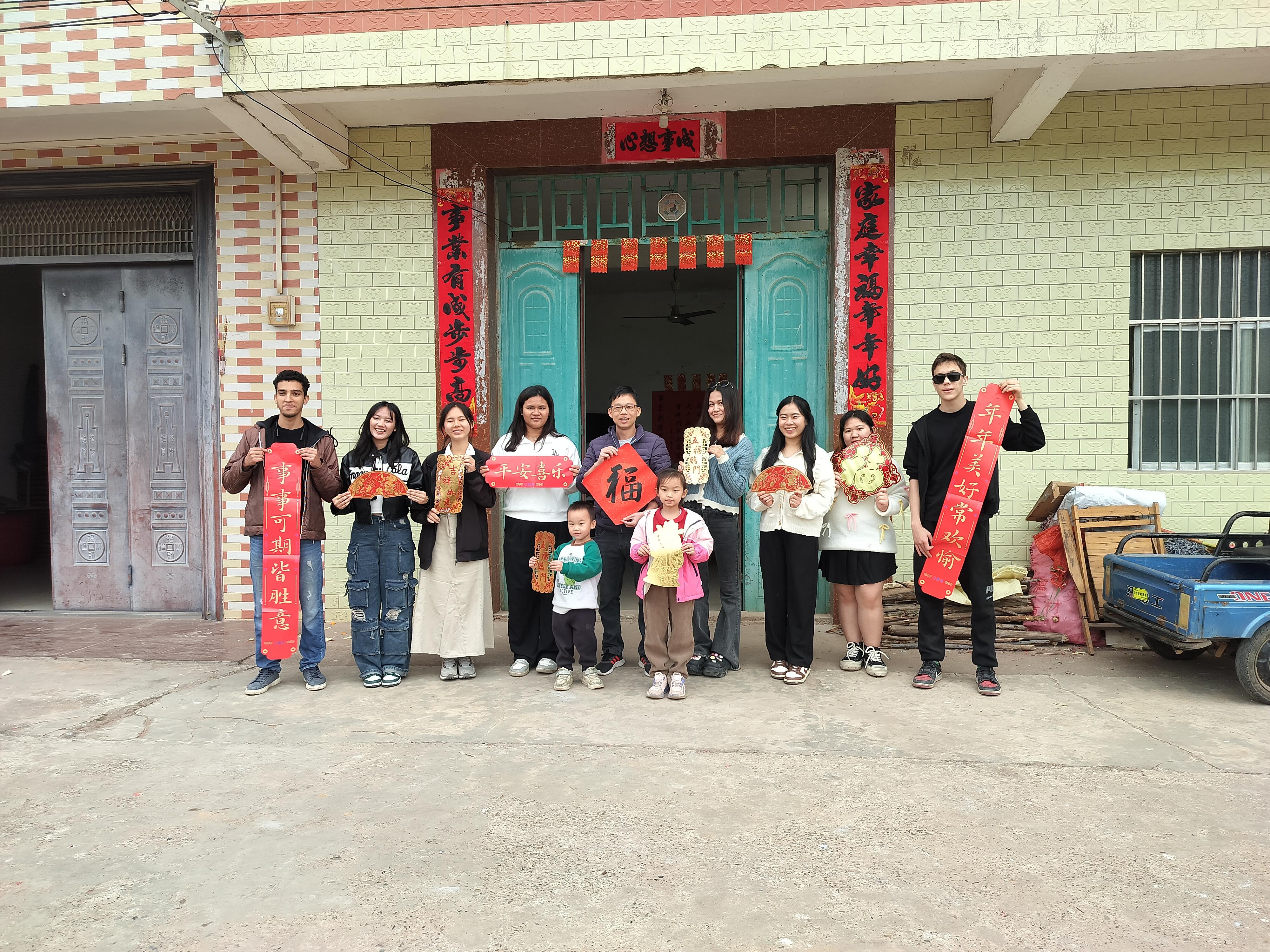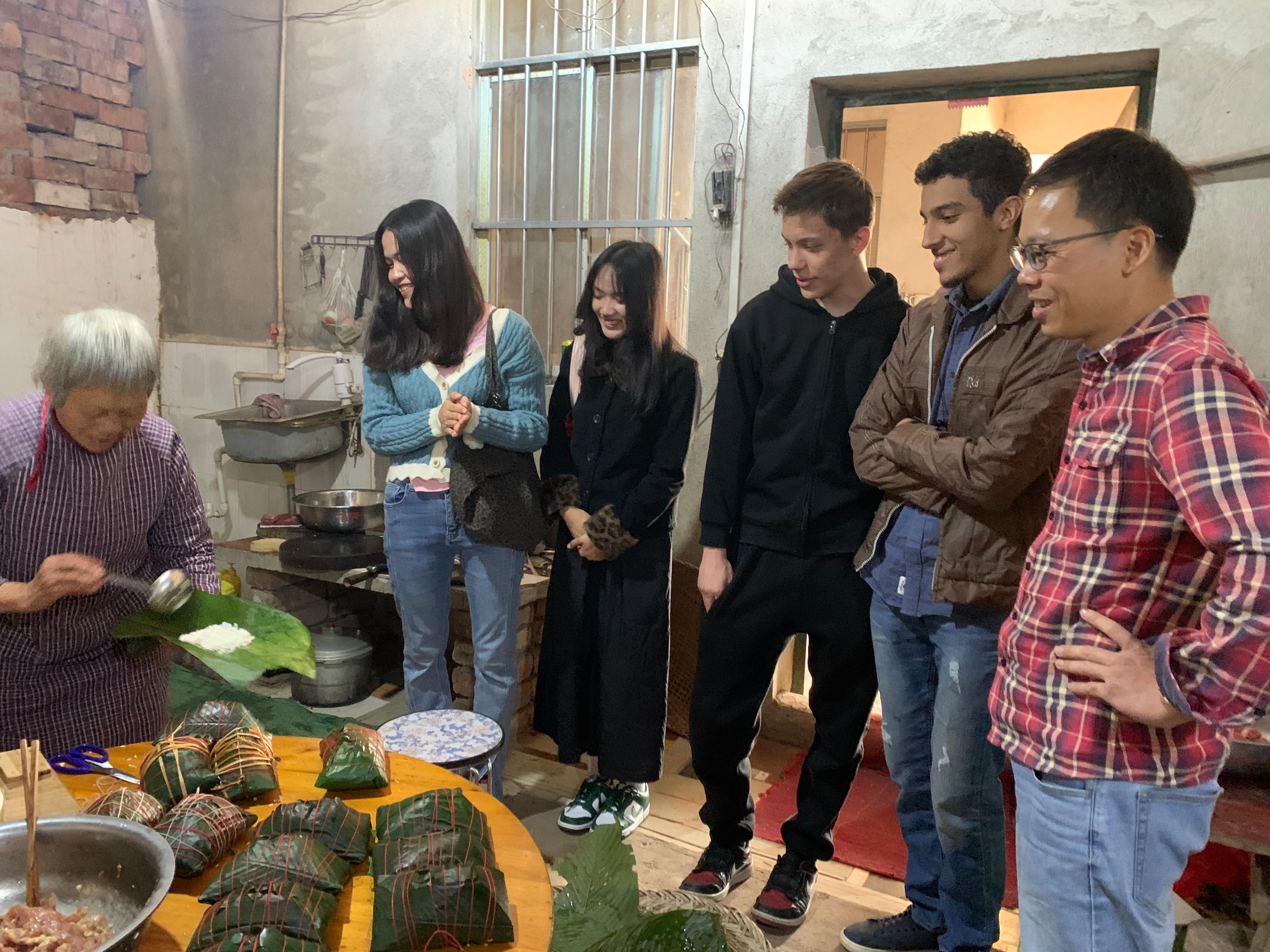 “爆竹声中一岁除,春风送暖入屠苏。”大年初一、初二,在数字贸易学院(工商管理学院)教师黄富班的带领下,国际学生们前往南宁市邕宁区那楼镇坛垌村,与黄富班的家人一同欢度新春佳节。在那里,国际学生们学习包粽子,贴春联,放烟花爆竹,享春节特色美食,感受浓厚的春节氛围,体验中华民族几千年的传统文化。