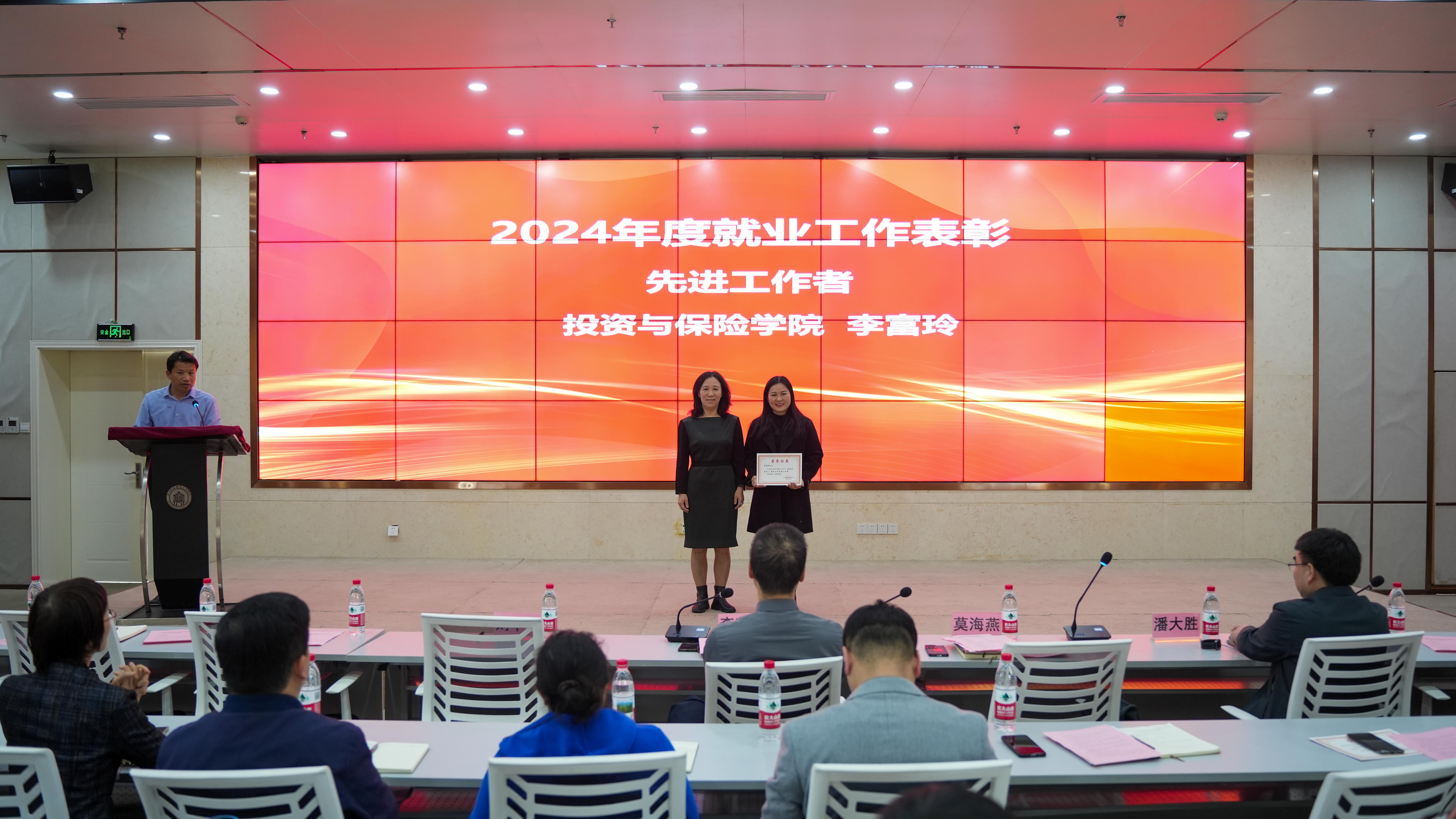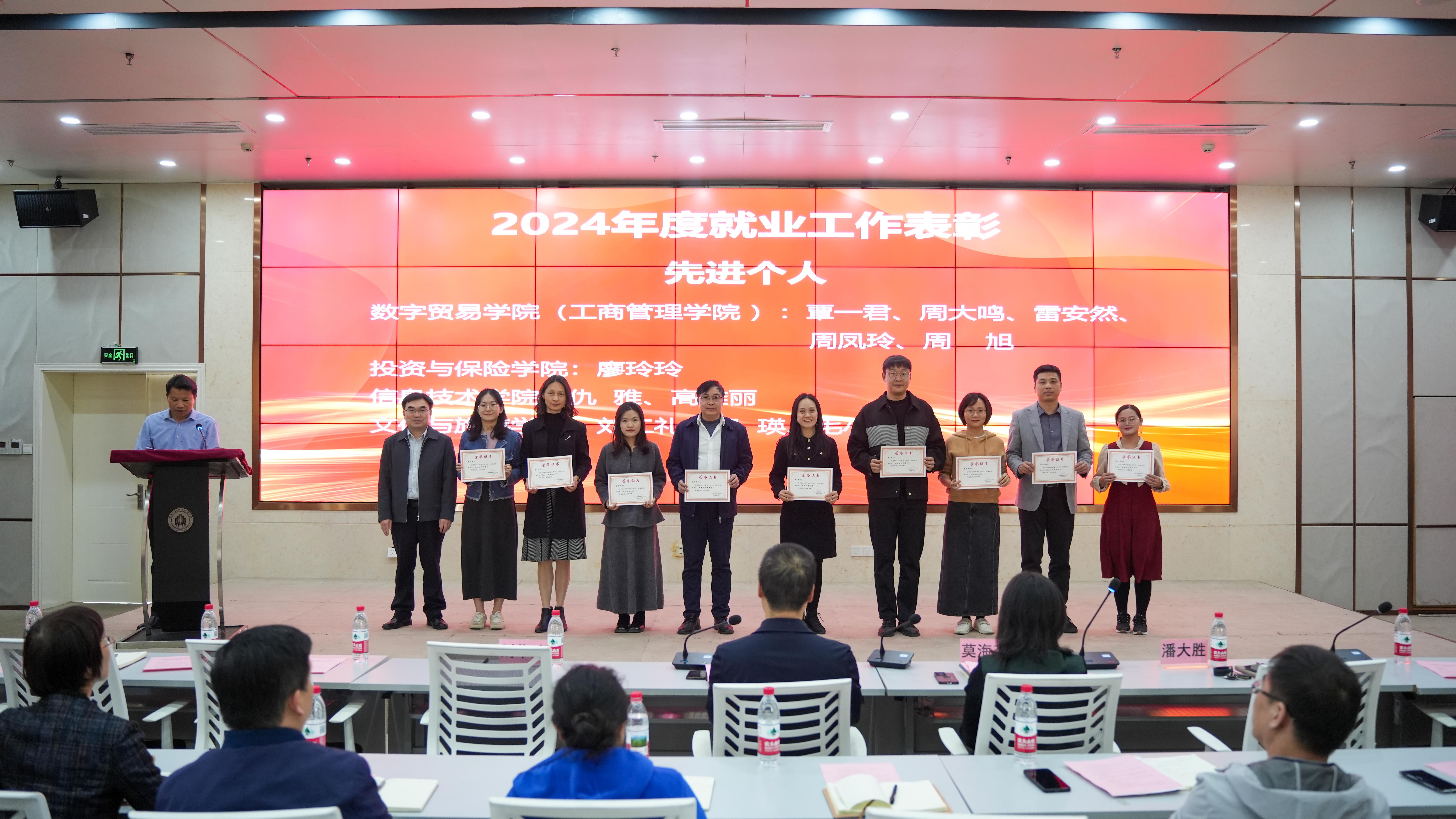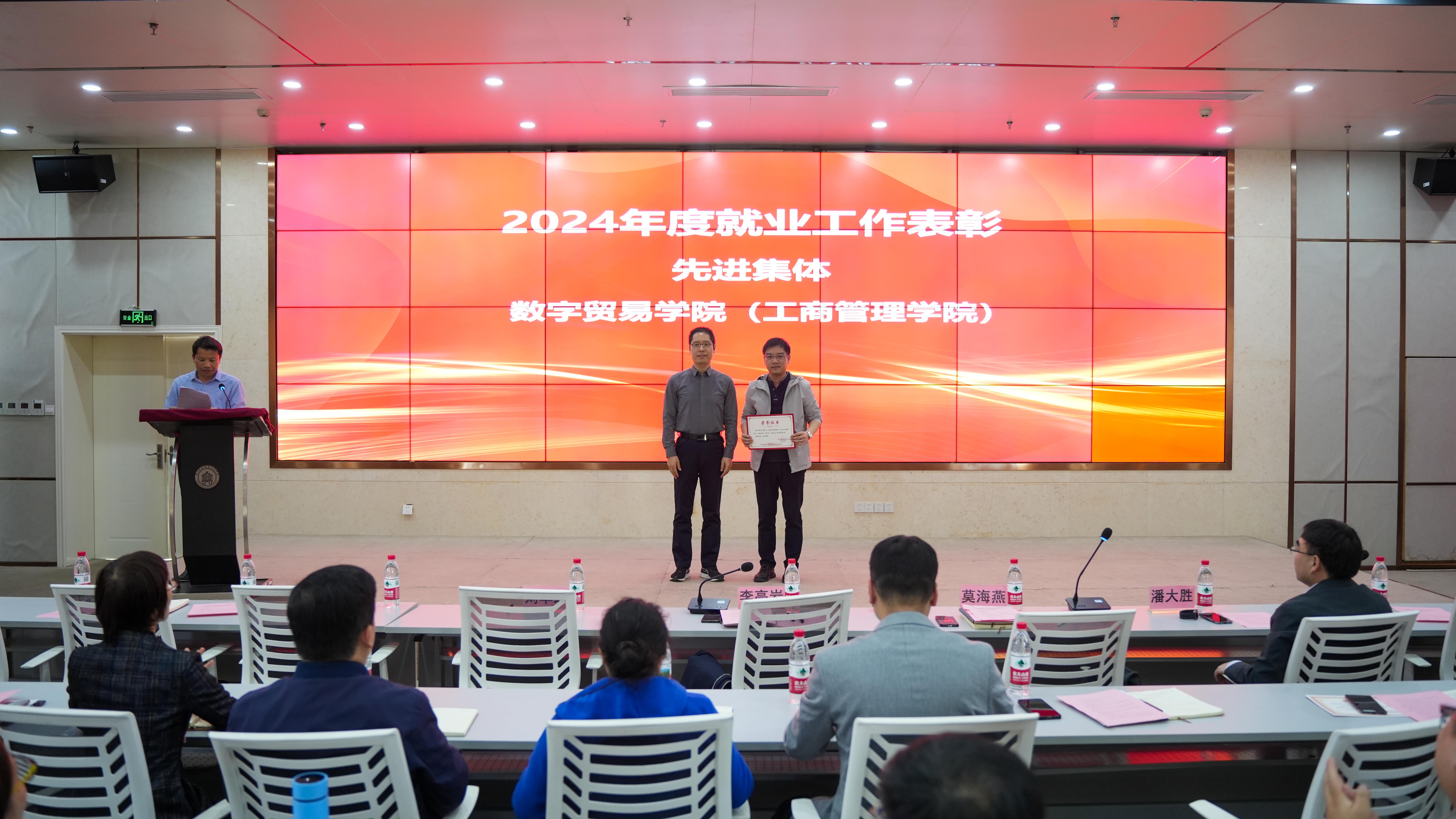 2024年度就业工作先进集体数字贸易学院(工商管理学院)院长黄涛和2024年度就业工作先进个人会计学院专职辅导员覃耀坚作交流发言,分享了各自在就业工作中的经验与心得。