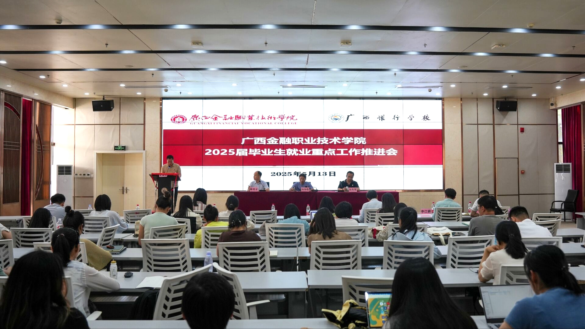 为落实教育部召开的2025届全国高校毕业生就业重点工作推进视频会议精神。5月13日,万象城官网在西校区道德大讲堂召开2025届毕业生就业重点工作推进会,党委副书记、纪委书记刘华政出席会议,招生就业处全体人员、各二级学院负责领导、专业带头人、招生就业专干、2025届毕业班辅导员参加会议。会议由招生就业处副处长杨吉才主持。
