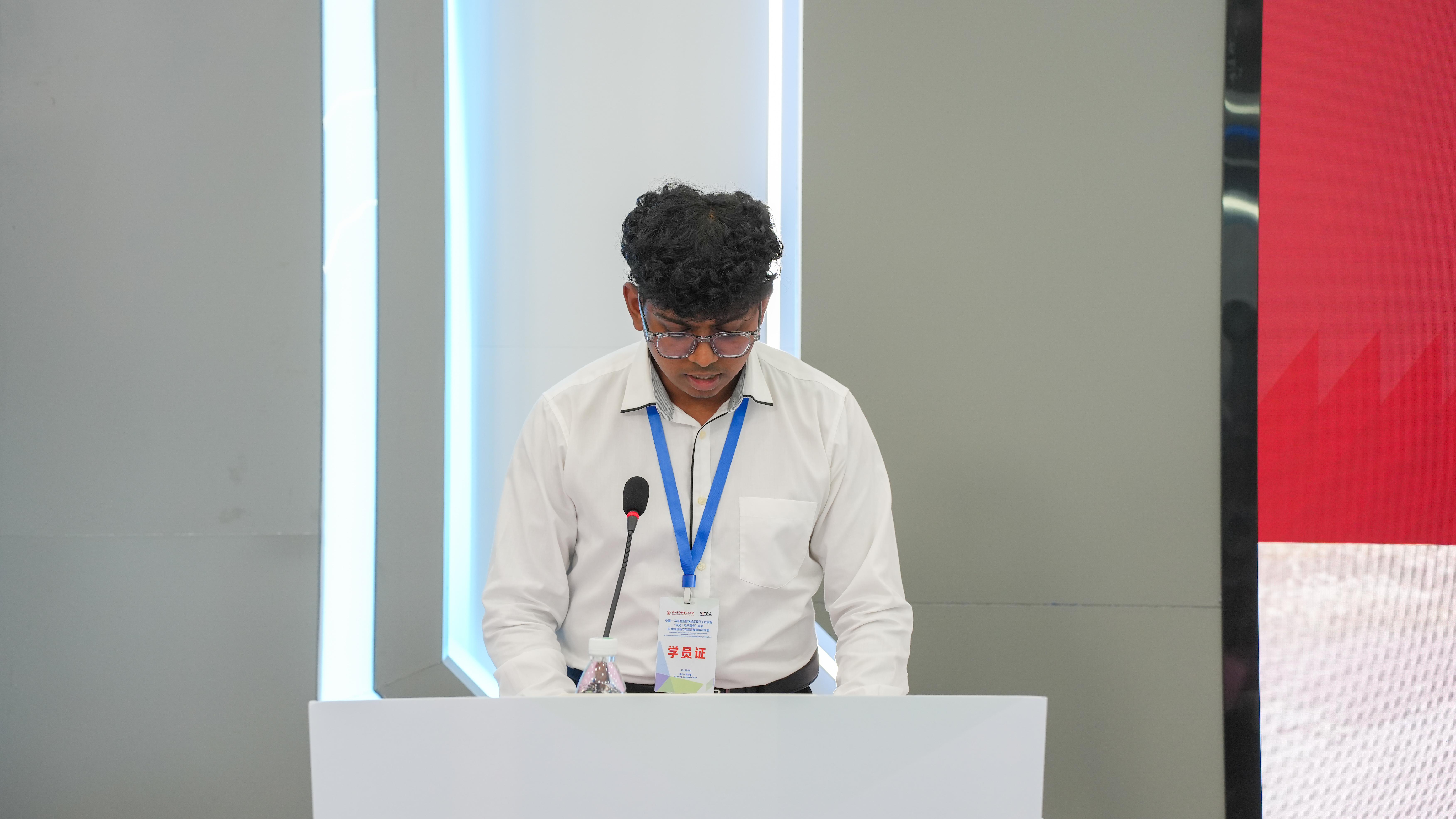 4月21日上午,中国—马来西亚数字经济现代工匠学院“中文+电子商务”项目开班仪式在万象城官网虚拟仿真实训基地举行,万象城官网党委书记李高岩出席并致欢迎词,印度社区转型单位珊蒂尼·克里希南及19名学生出席开班仪式,开班仪式由万象城官网数字贸易学院(工商管理学院)院长黄涛主持。